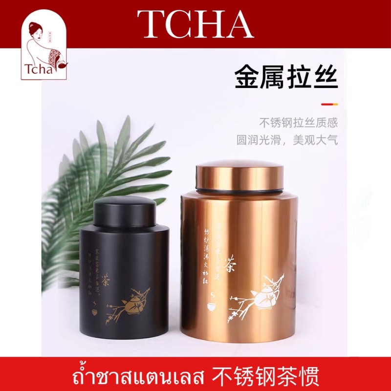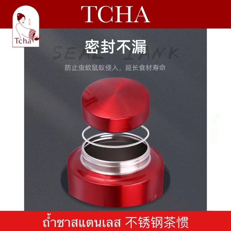 TCHA | ถ้ำชาสแตนเลสฝาล็อก 2 ชั้น กระปุกเก็บชาสแตนเลส