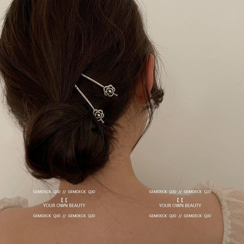 กิ๊บติดผม แบบแบน ประดับมุก ดอกคามิเลีย สีทอง ขนาดเล็ก สไตล์เกาหลี มี 1 ชิ้น 2022