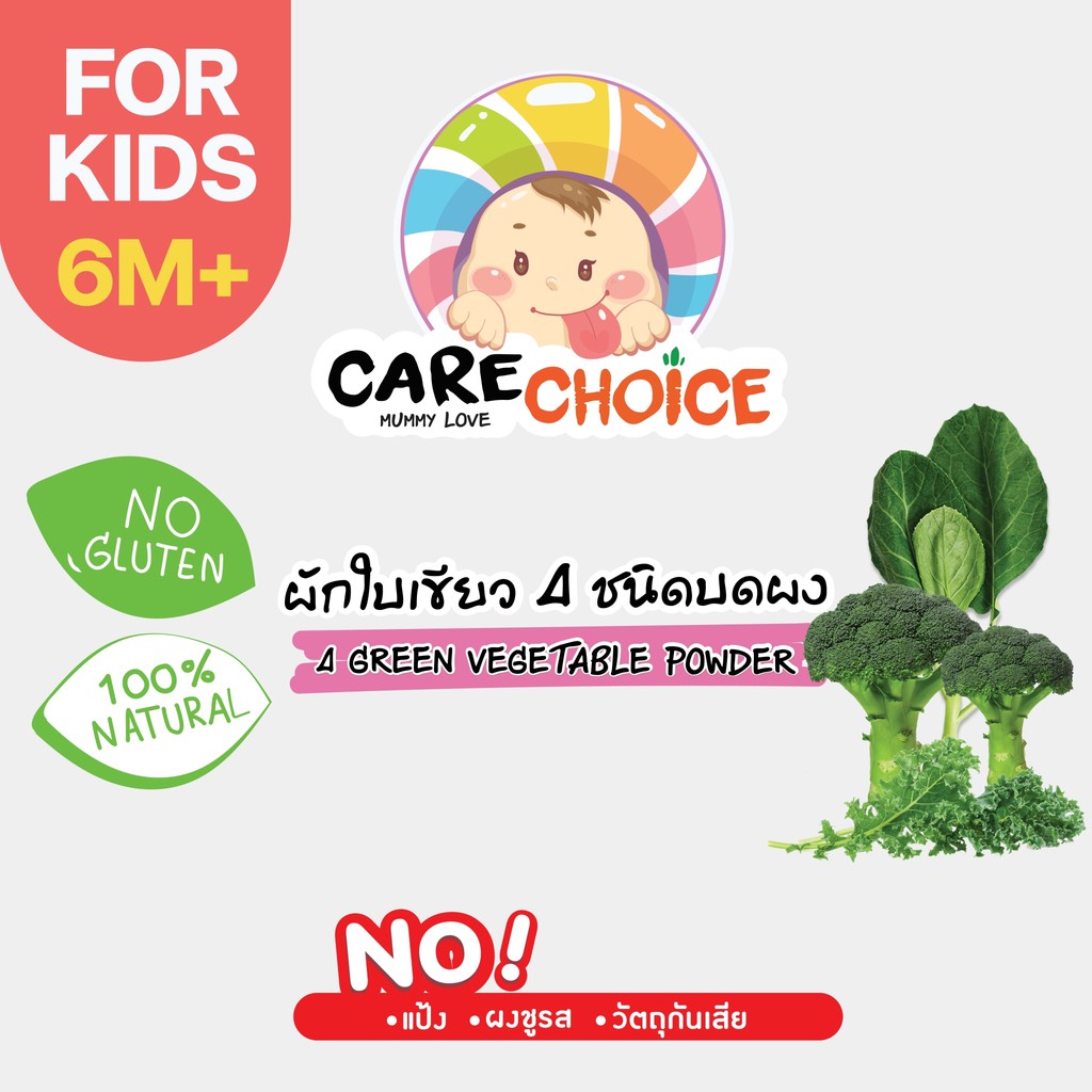 C076 ผักใบเขียว 4 ชนิดบดผง แบรนด์ แคร์ช้อยส์ 12g.อาหารทารก (6 เดือน+) สูตรธรรมชาติ ไม่ปรุงแต่ง ผักบด