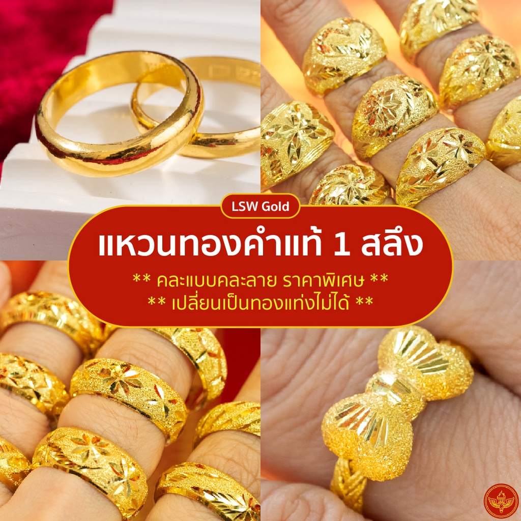 [คละลาย] LSW แหวนทองคำแท้ 1 สลึง (3.79 กรัม) คละแบบคละลาย ราคาพิเศษที่สุด มาพร้อมใบรับประกัน
