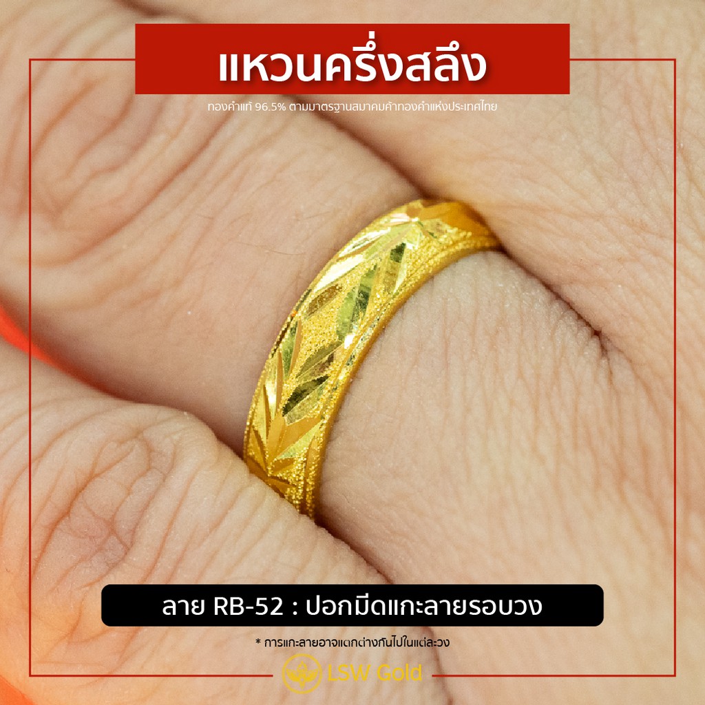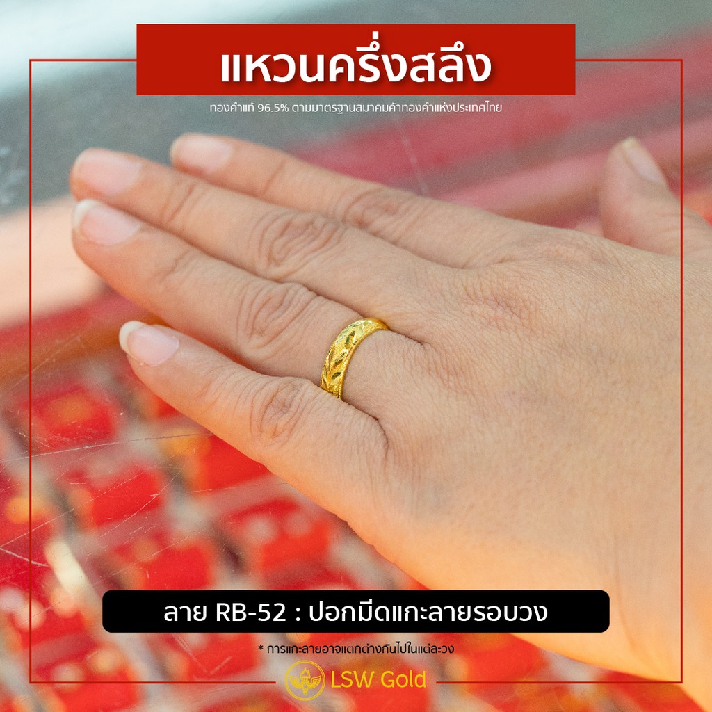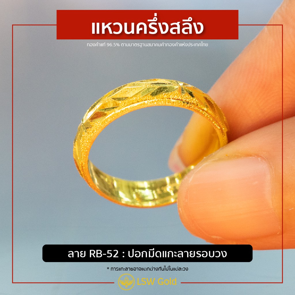 LSW แหวนทองคำแท้ ครึ่ง สลึง (1.89 กรัม) ลายปอกมีดแกะลายรอบวง RB-52