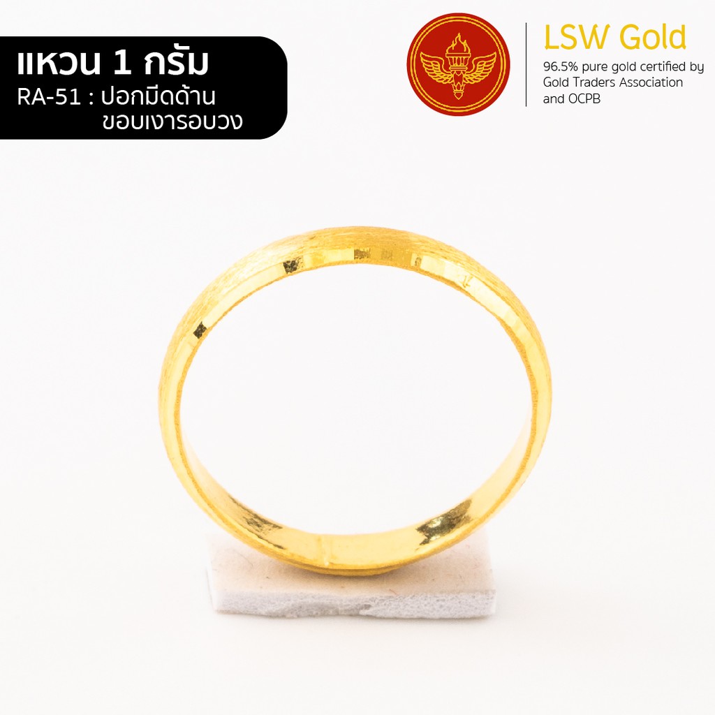 LSW แหวนทองคำแท้ 1 กรัม ลาย ปอกมีดด้านขอบเงารอบวง RA-51