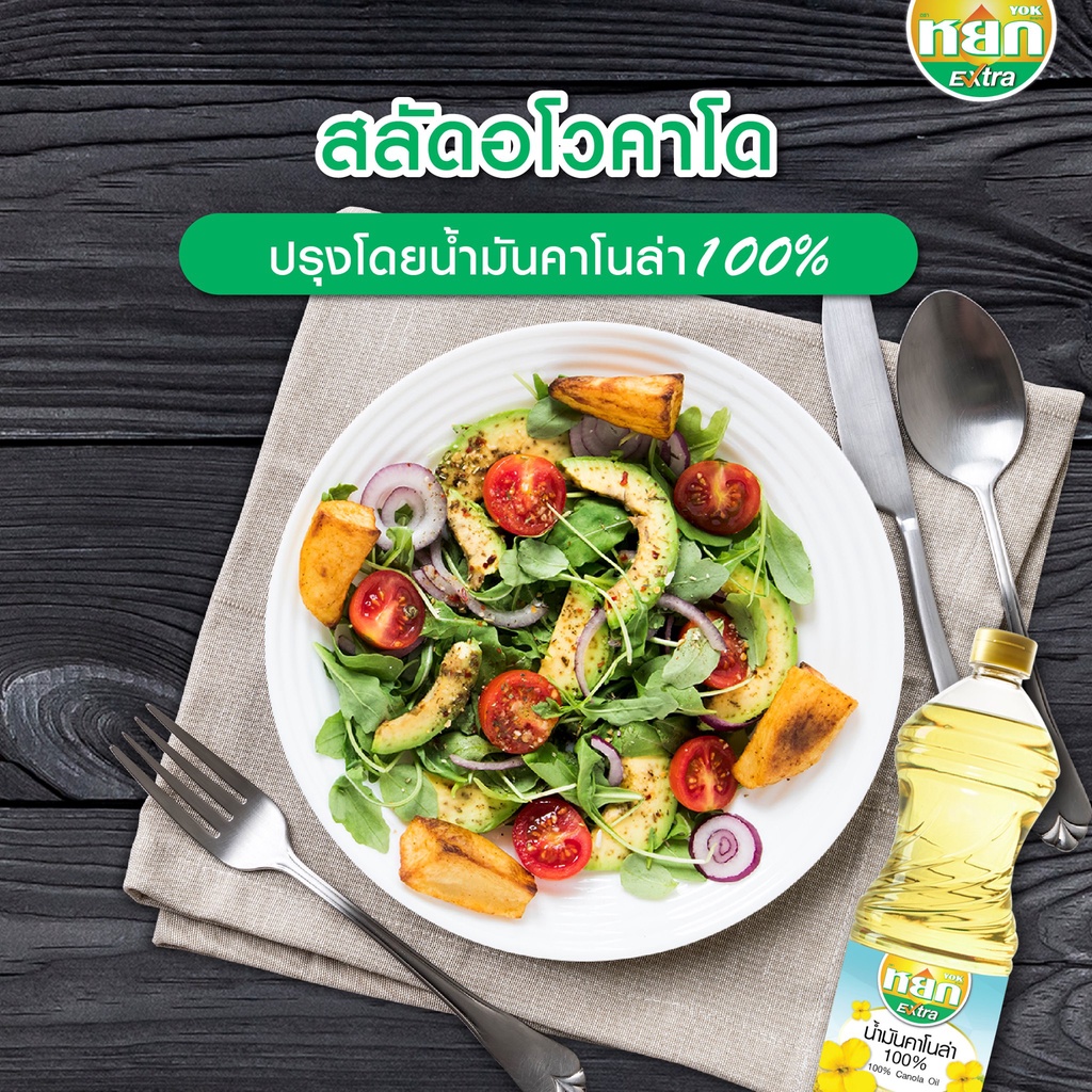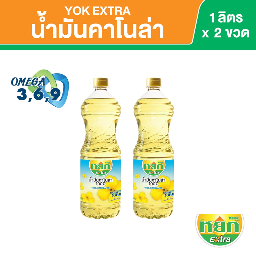 หยก เอ็กซ์ตร้า น้ำมันคาโนล่า 100% ชนิดขวด 1 ลิตร x 2 ขวด Yok Extra Canola Oil 1 L x 2 Bottles