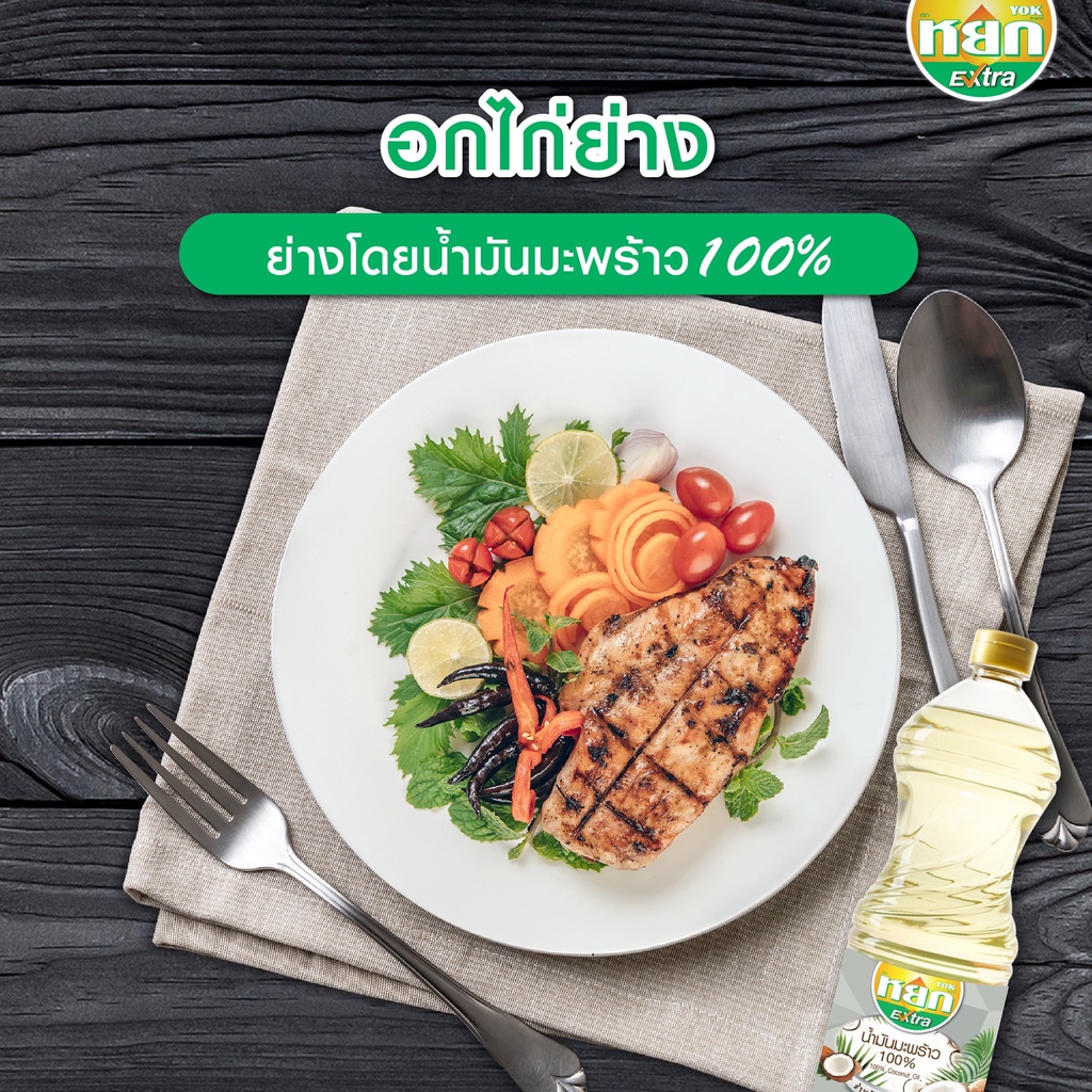 หยก เอ็กซ์ตร้า น้ำมันมะพร้าว 100% ชนิดขวด 1 ลิตร x 2 ขวด Yok Extra Coconut Oil 1 L x 2 Bottles