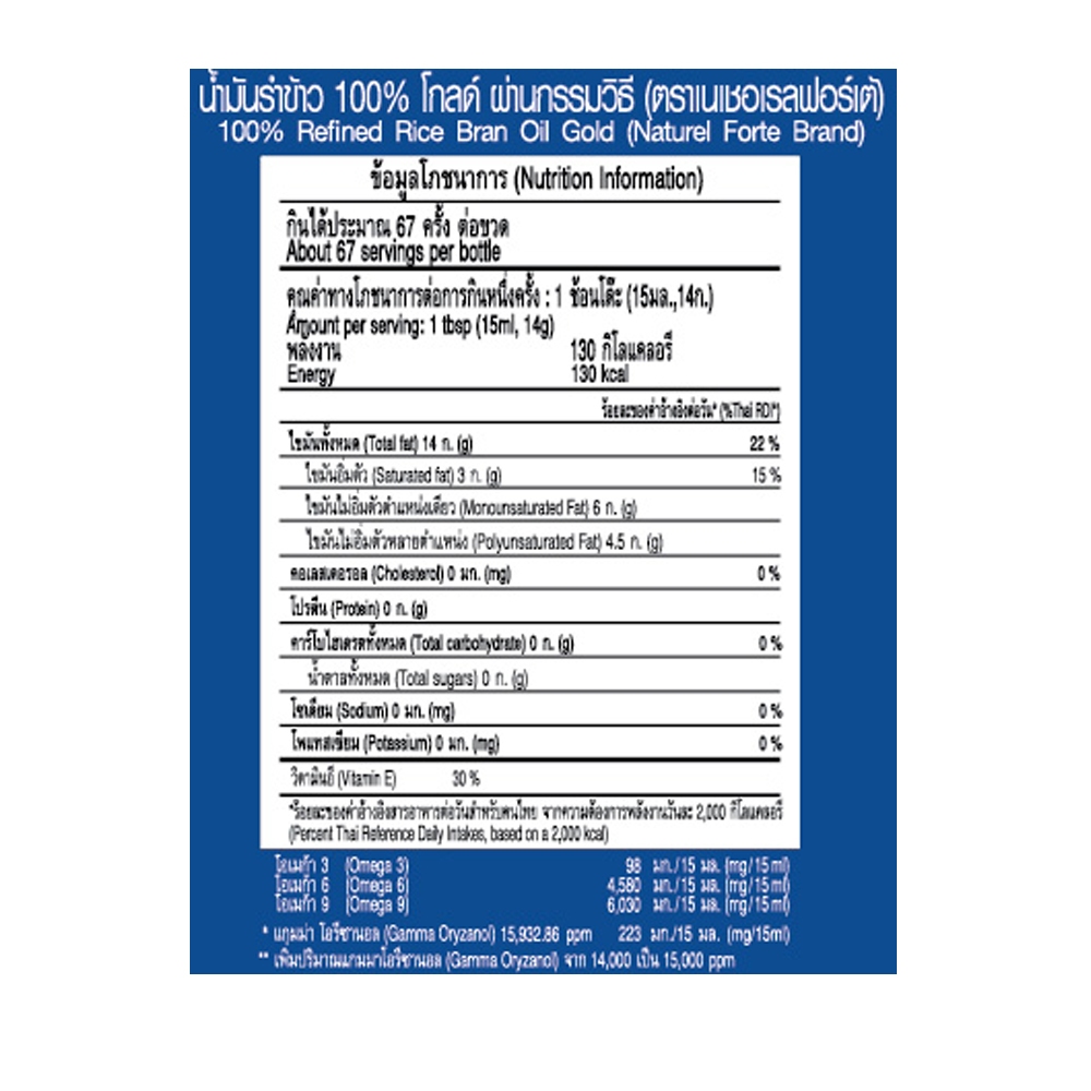 เนเชอเรลฟอร์เต้ น้ำมันรำข้าว ชนิดขวด 1 ลิตร x 2 ขวด Naturel Forte rice bran oil 1L x2 bottle