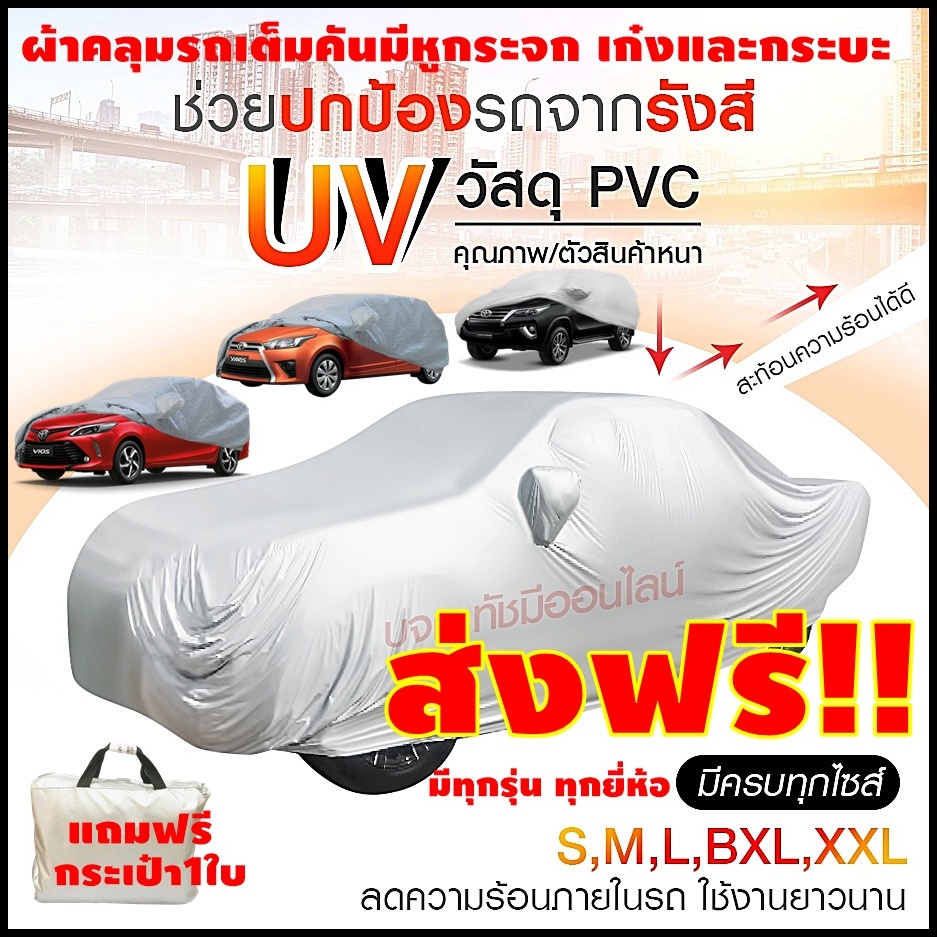 BHFF85QX ลด15% ส่งด่วน! ผ้าคลุมรถยนต์ ฟรี🔥ถุงผ้า รถกระบะ รถเก๋ง SUV อย่างหนา HI PVC S M L XXL BXL