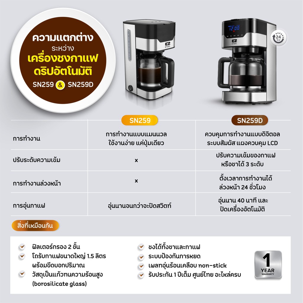 ส่งฟรี!! ETZEL เครื่องชงกาแฟดริปแบบมาตรฐาน รุ่น SN259 / เครื่องชงกาแฟดริปแบบดิจิตัล รุ่น SN259D