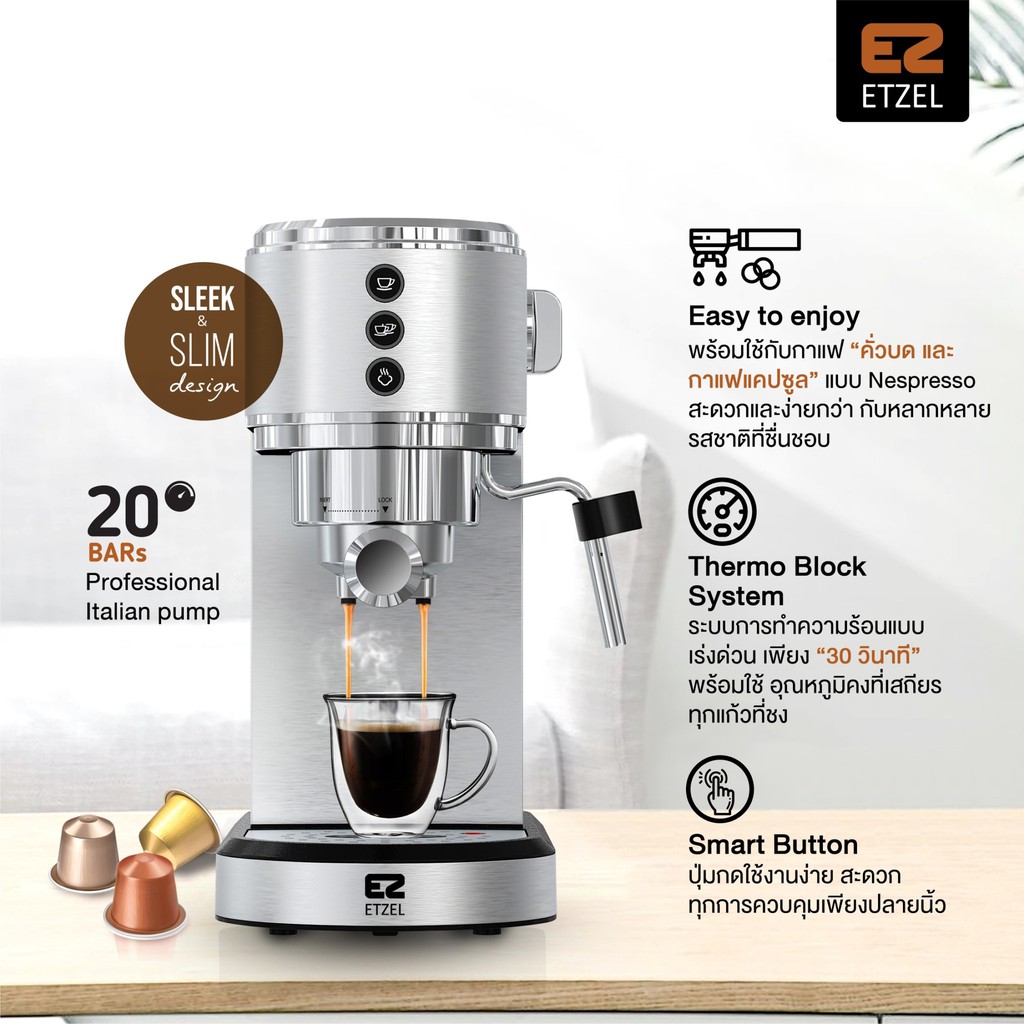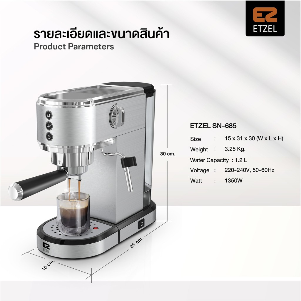 ส่งฟรี!! ETZEL เครื่องชงกาแฟสด ชงแคปซูลได้ รุ่น SN685 Sleek & Slim แรงดัน 20 บาร์ 1350 วัตต์ ประกัน 1 ปี