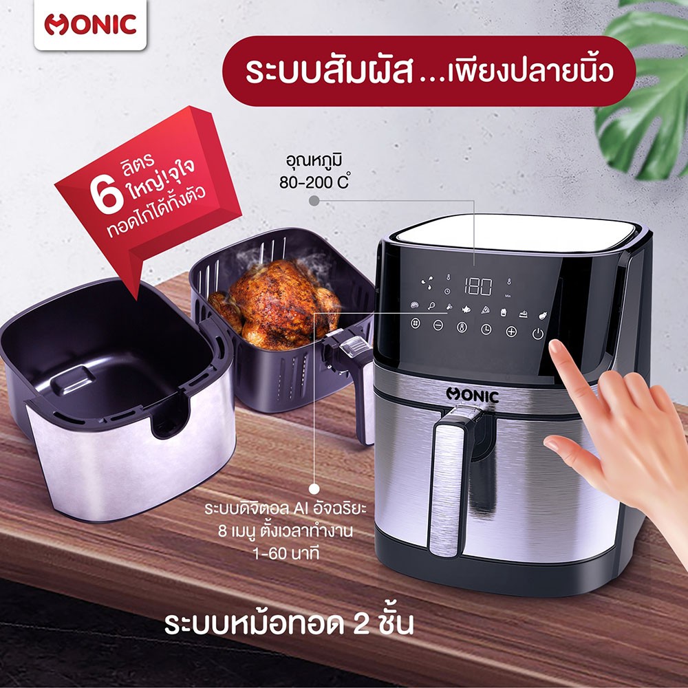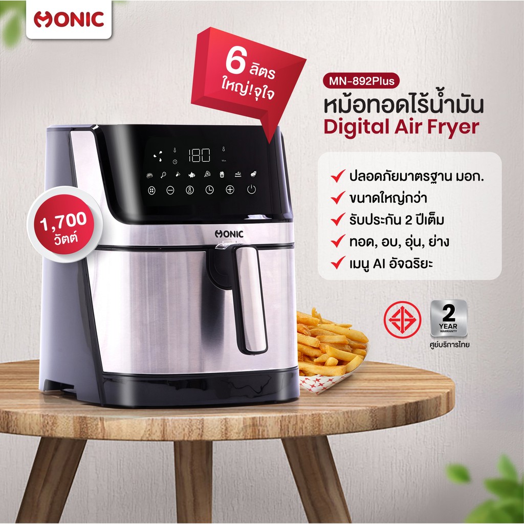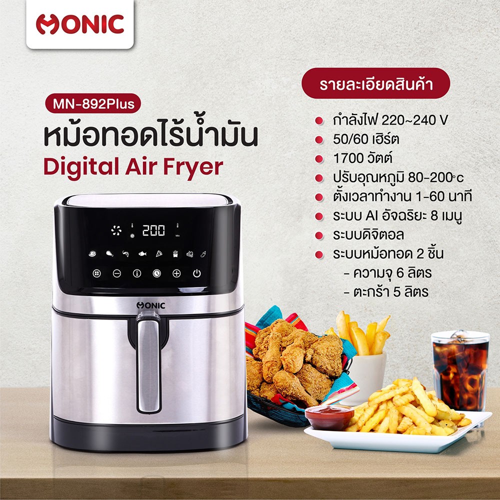 ส่งฟรี !! MONIC หม้อทอดไร้น้ำมัน หม้อทอดลมร้อน Digital Air fryer รุ่น MN-892Plus