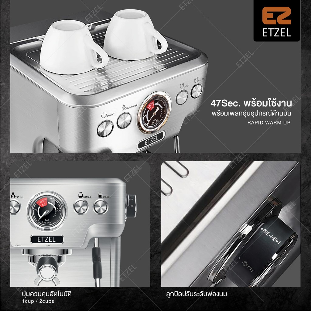 ส่งฟรี!! เครื่องชงกาแฟ ETZEL รุ่น SN6570 แรงดัน 20 บาร์ สำหรับเปิดร้าน 58mm กลั่นได้ทั้งชา และกาแฟ
