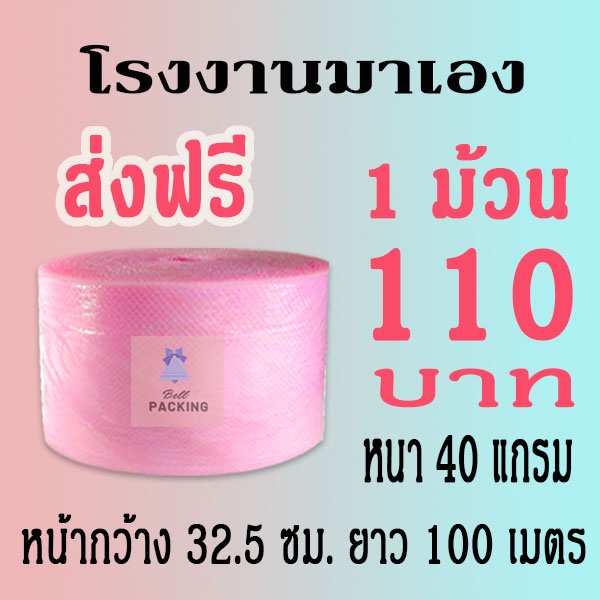 ❤ ส่งฟรี ❤ Airbubble แอร์บับเบิลกันกระแทก สีชมพู 32.5*100 เมตร 40แกรม 1ออเดอร์ไม่จำกัดจำนวน
