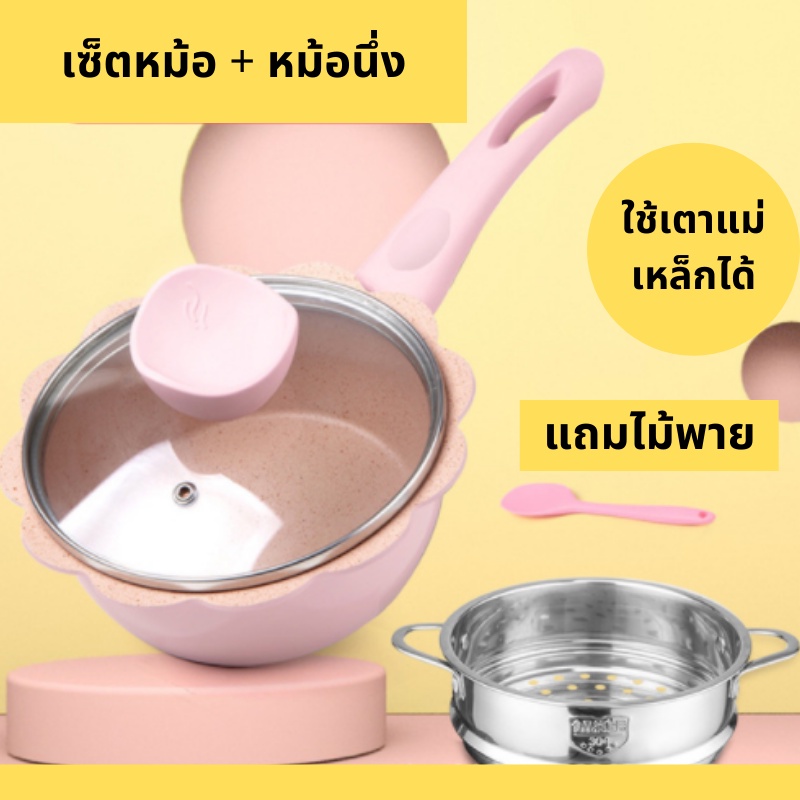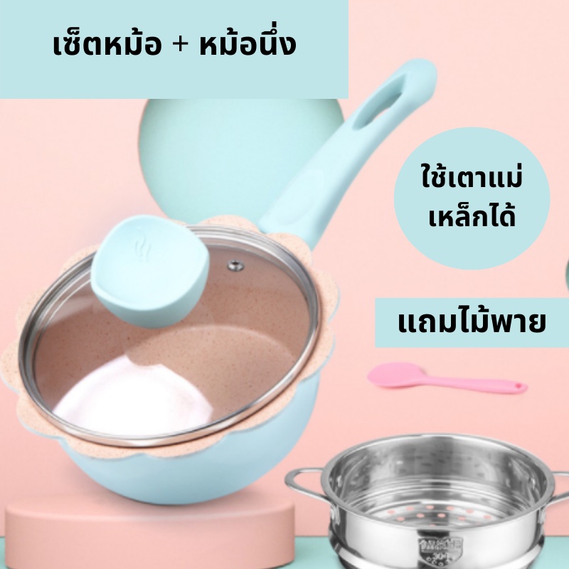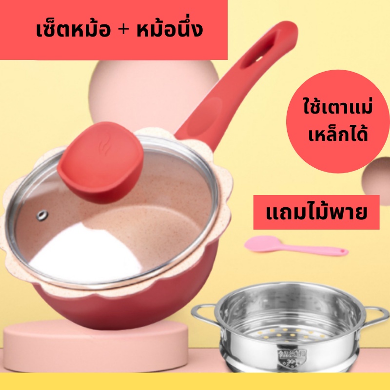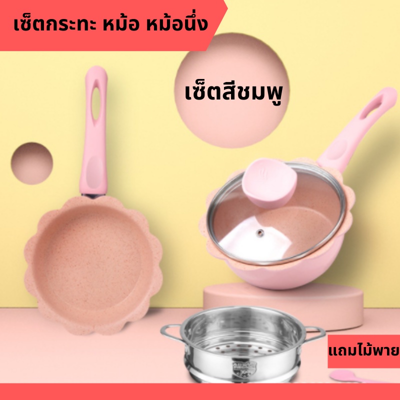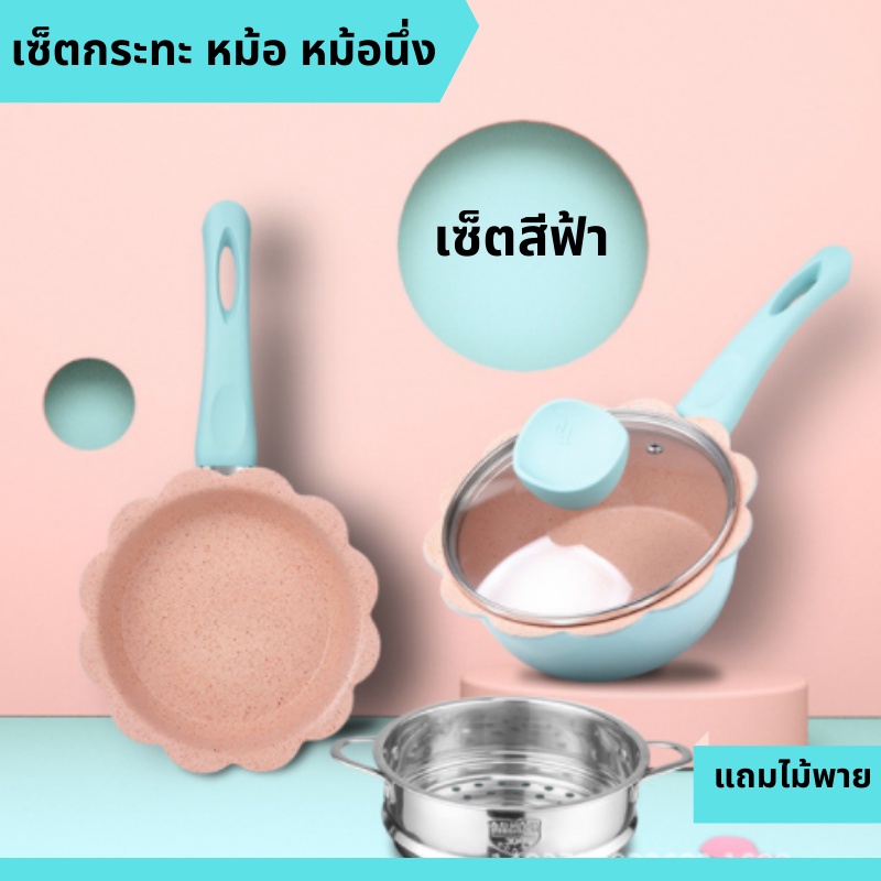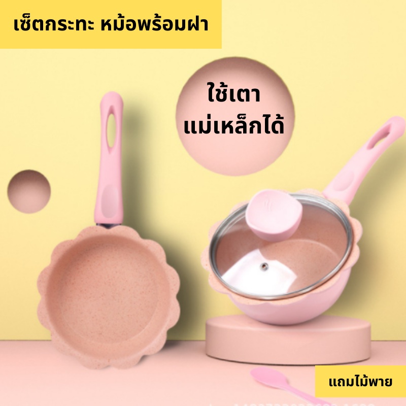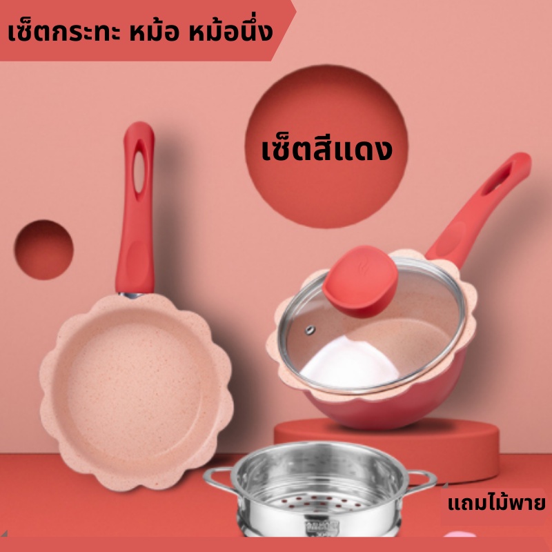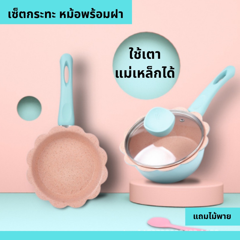 เซ็ตเครื่องครัว เซ็ตกระทะ เซ็ตหม้อ เซ็ตกระทะหม้ออลูมิเนียม เคลือบไม่ติดกระทะ สามารถใช้กับเตาแม่เหล็กไฟฟ้าได้ พร้อมส่ง
