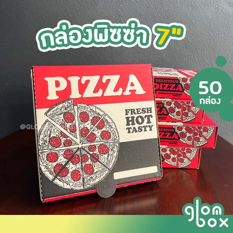 กล่องพิซซ่า ขนาด 7 นิ้ว (แพ็คละ 50 กล่อง) กระดาษลูกฟูก ใส่อาหาร อเนกประสงค์ กระดาษแข็งแรง รับผลิตแบรนด์ glombox