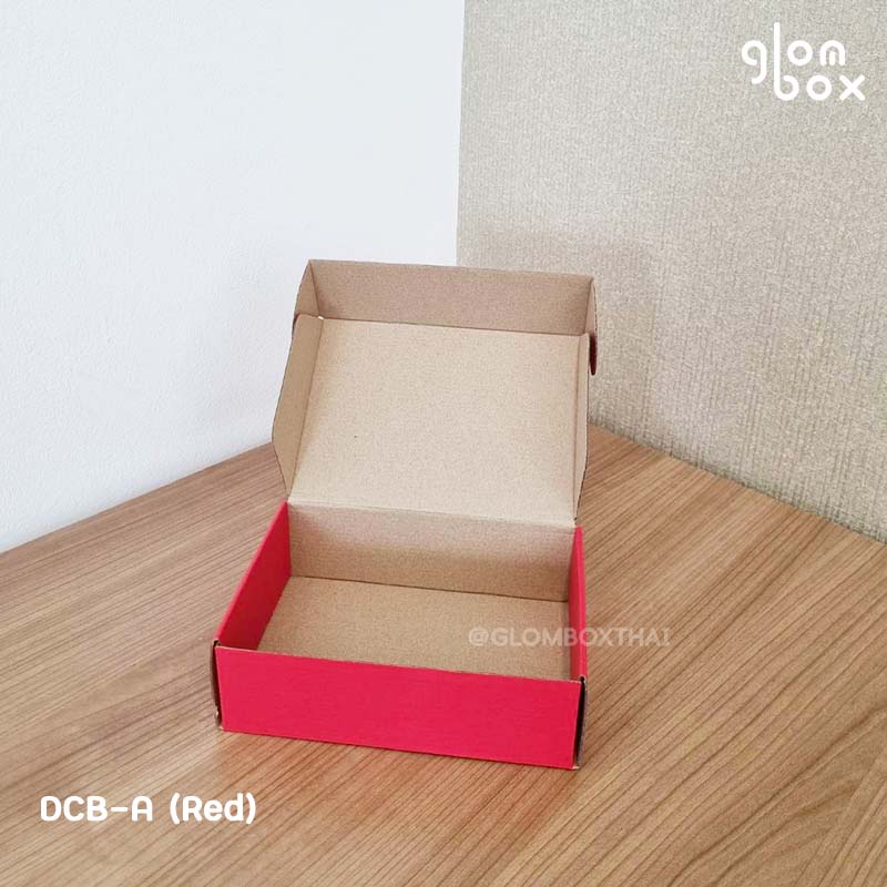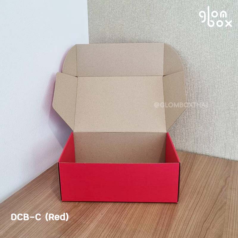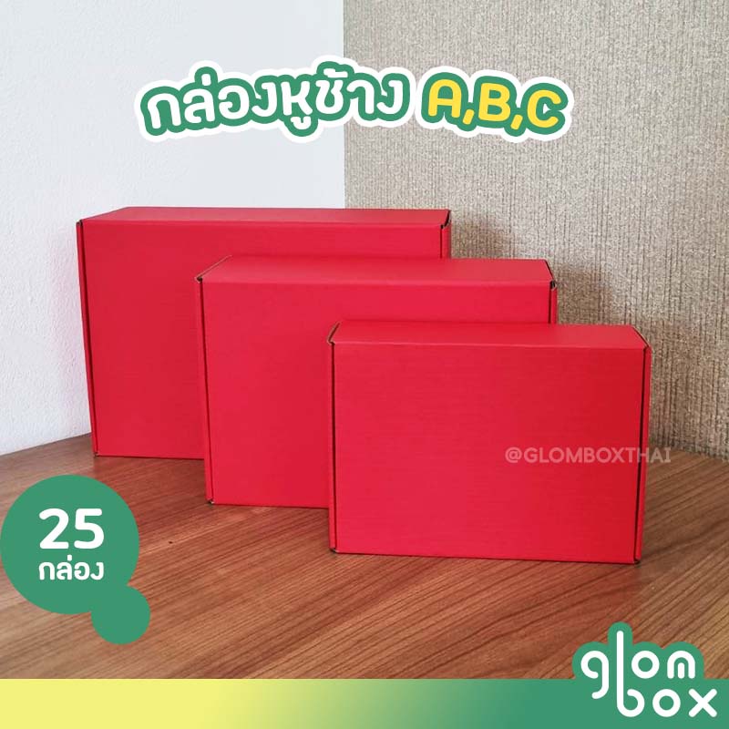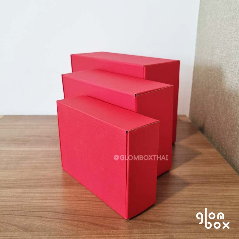 กล่องหูช้าง สีแดง กล่องลูกฟูกพัสดุไปรษณีย์ ฝาเสียบ (25 กล่อง/แพค) รับผลิตแบรนด์ glombox