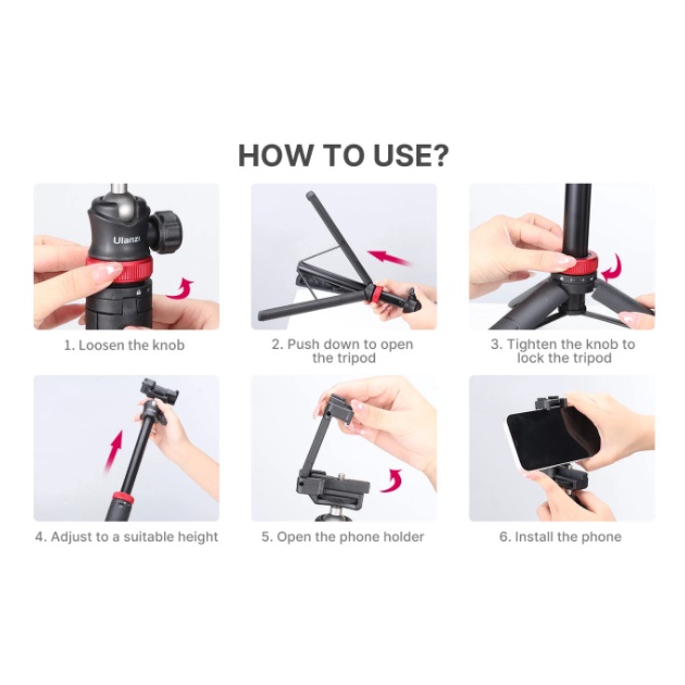Ulanzi MT-44 Extendable Vlog Tripod ขาตั้งกล้อง ขาตั้งพกพาพร้อมที่หนีบมือ เป็นได้ทั้งขาตั้งและไม้เซลฟี่ยาวมีสีขาว/ดำ