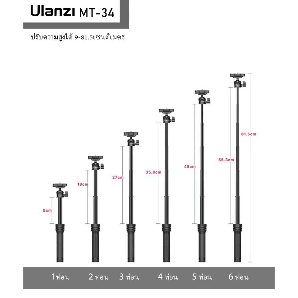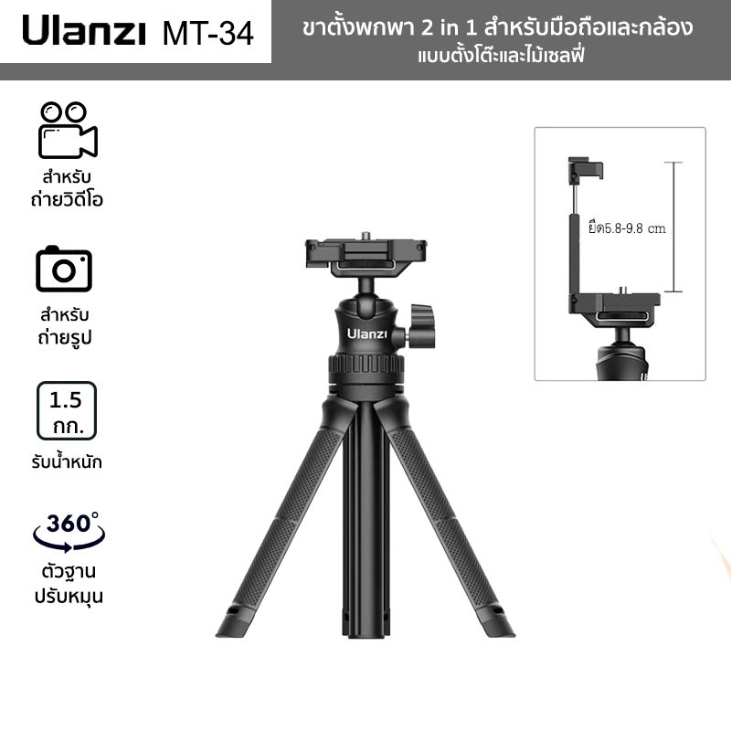 ขาตั้งพกพา Ulanzi รุ่น MT-34 พร้อมที่หนีบมือถือสำหรับมือถือและกล้อง 2in1 Mini Tripod ปรับความสูง 81.5 ซม.