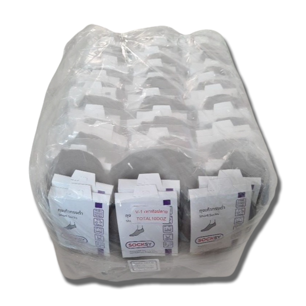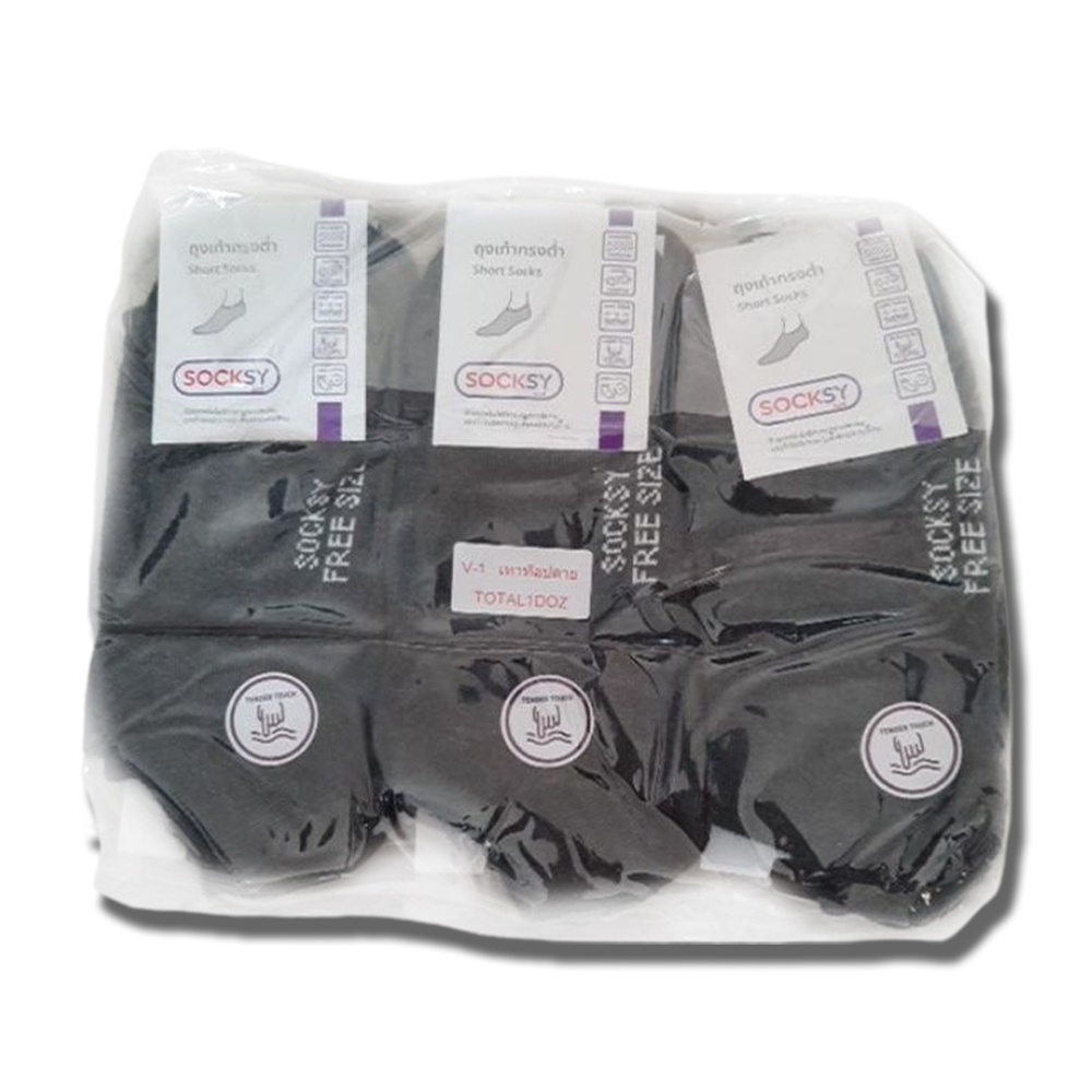 ถุงเท้าข้อต่ำใต้ข้อสีเทาเข้ม V-1 เทาท็อปดาย ฟรีไซส์ยกโหล(12คู่)