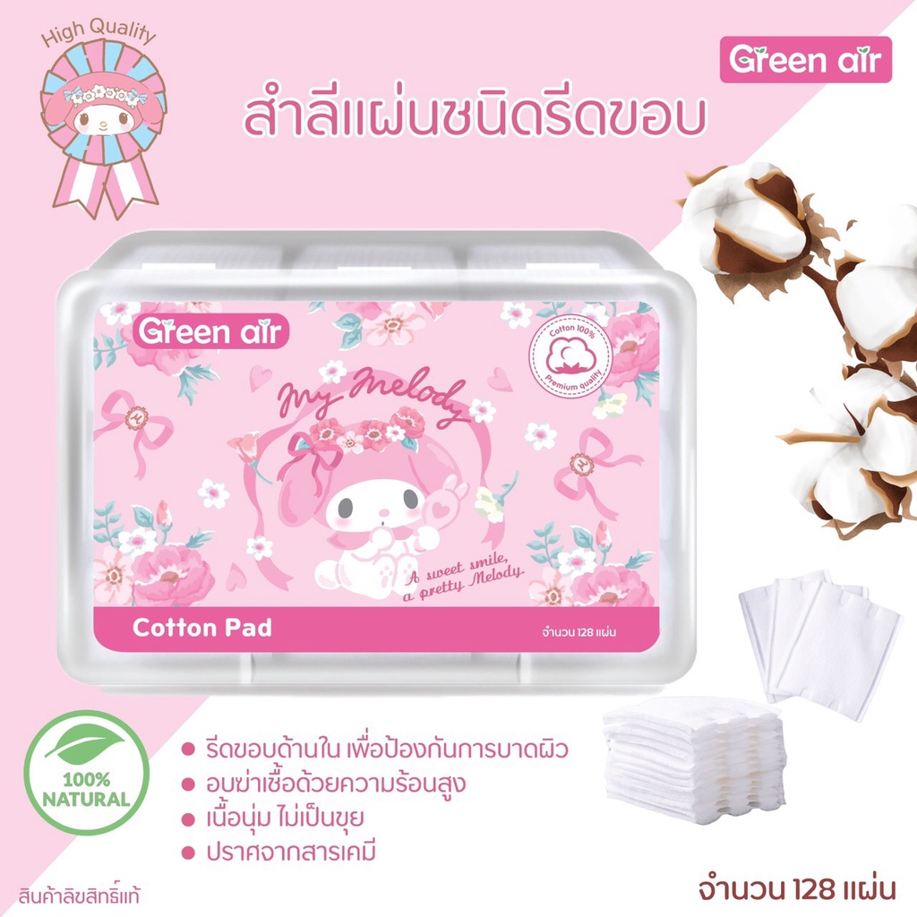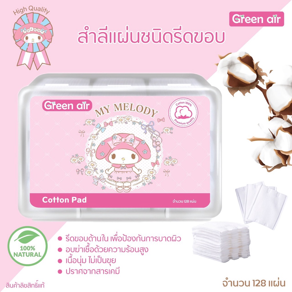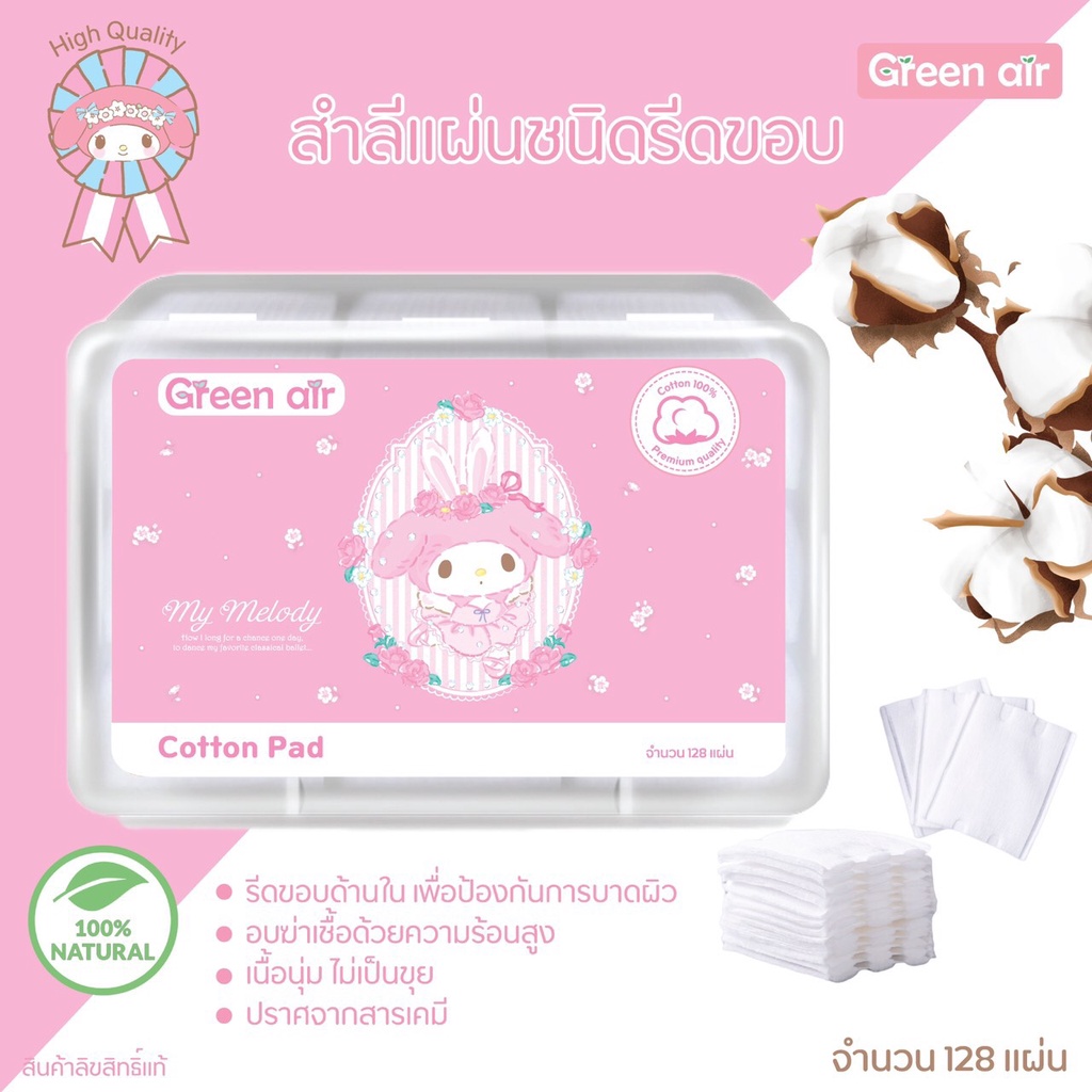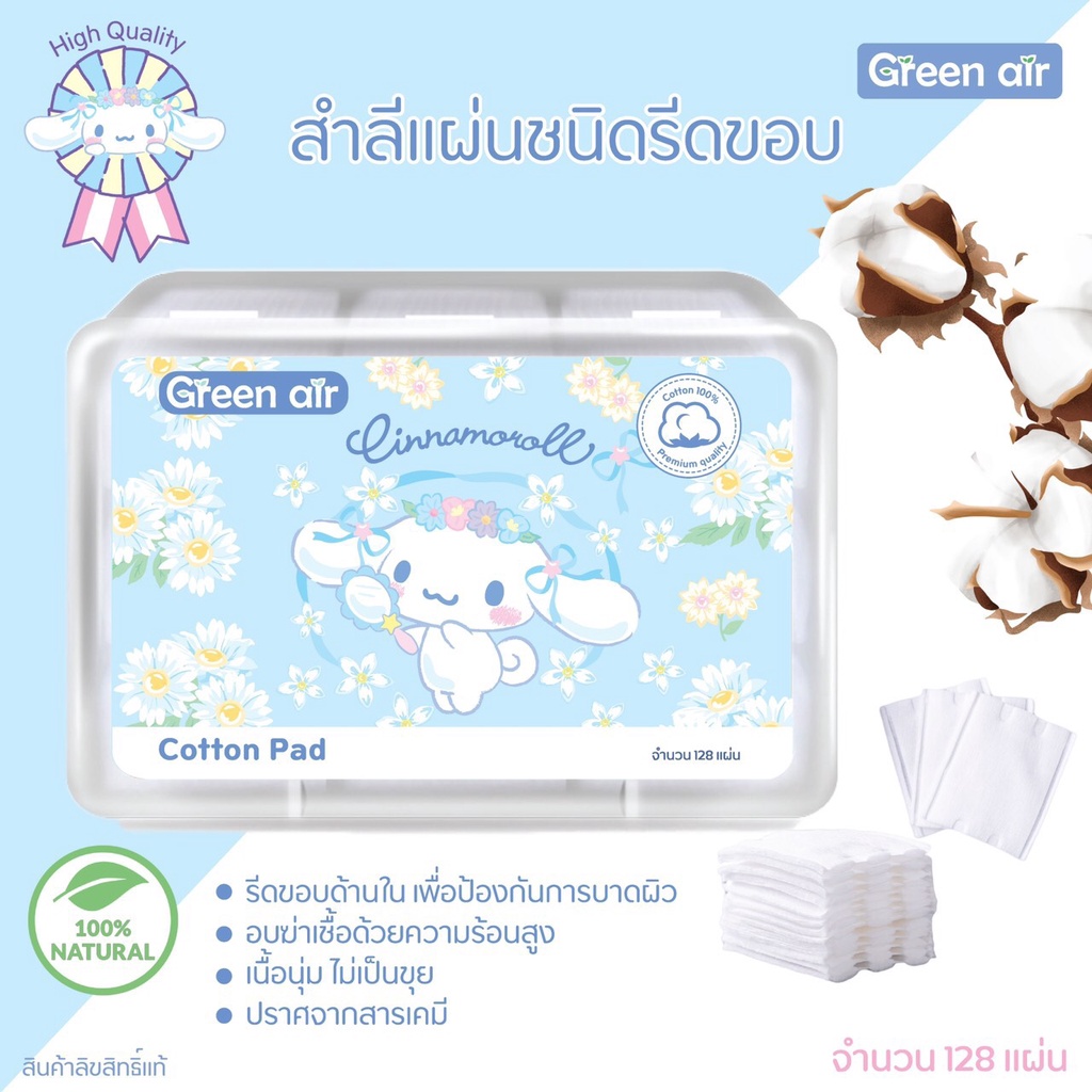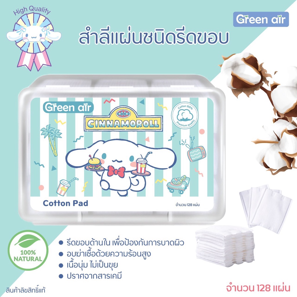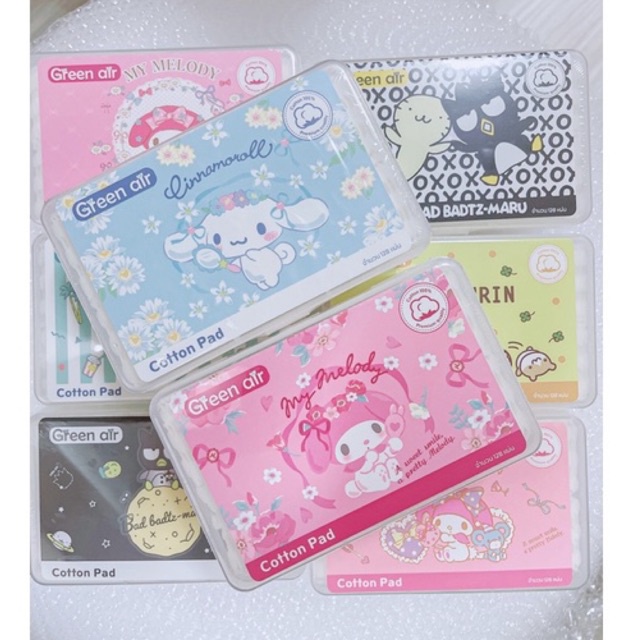 กล่องสำลี Sanrio พร้อมสำลีรีดขอบ (128ชิ้น/กล่อง)