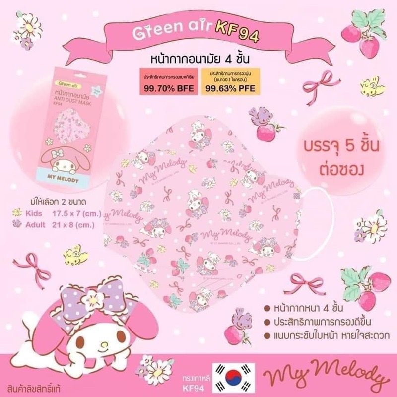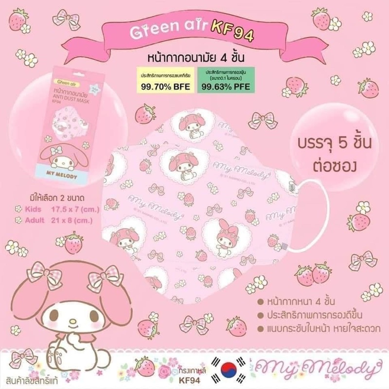 หน้ากากอนามัย KF94 mask เกาหลี ลิขสิทธิ์แท้ Sanrio&Disney ผู้ใหญ่และเด็ก