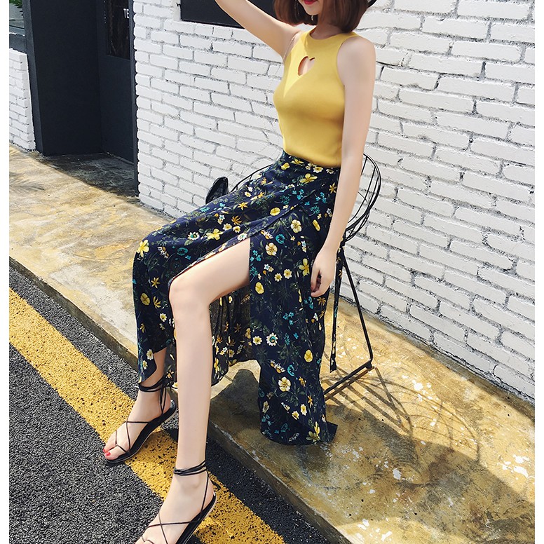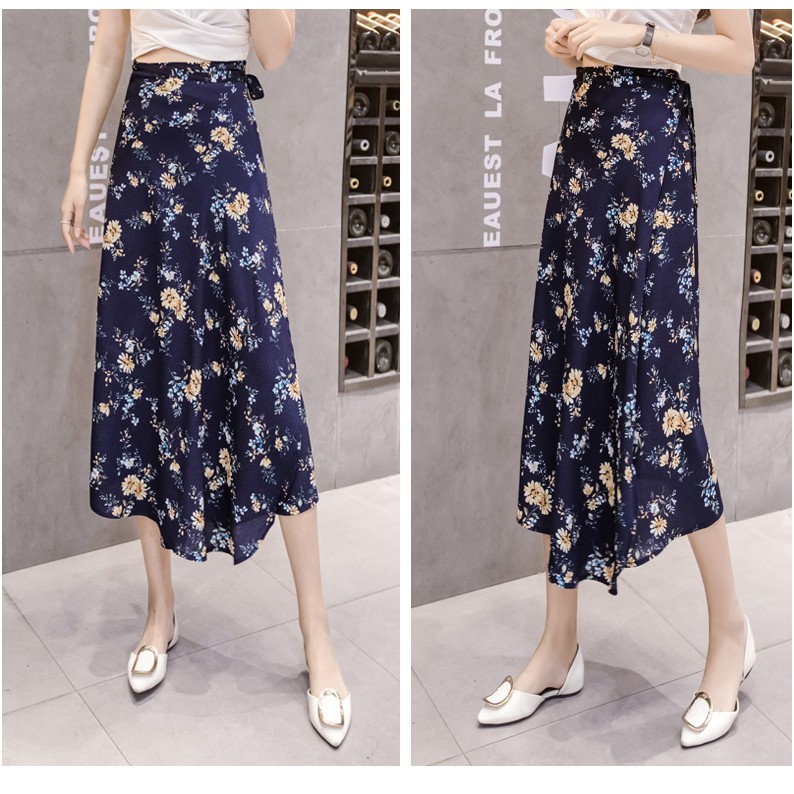 กระโปรงยาว ผ้าชีฟอง ผ้าบาง สำหรับสาวตัวเล็ก พิมพ์ลาย แบบผูก มี 3 แบบ พร้อมส่งจากไทย (มีคลิป)