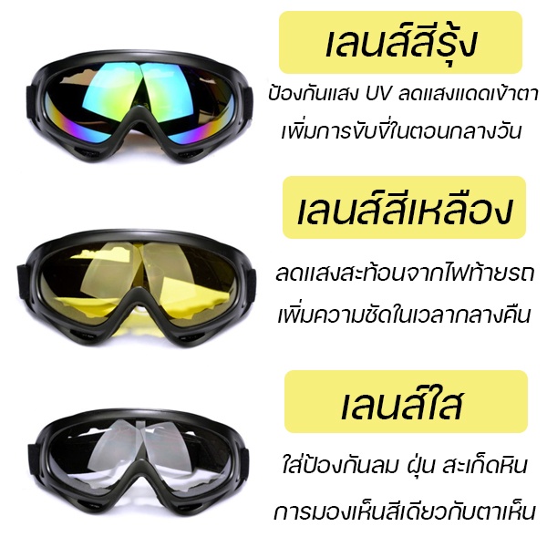 แว่นตาขี่จักรยาน กันฝุ่น กันลม สะเก็ดหิน ลดแสงแดดแรงๆเข้าตา