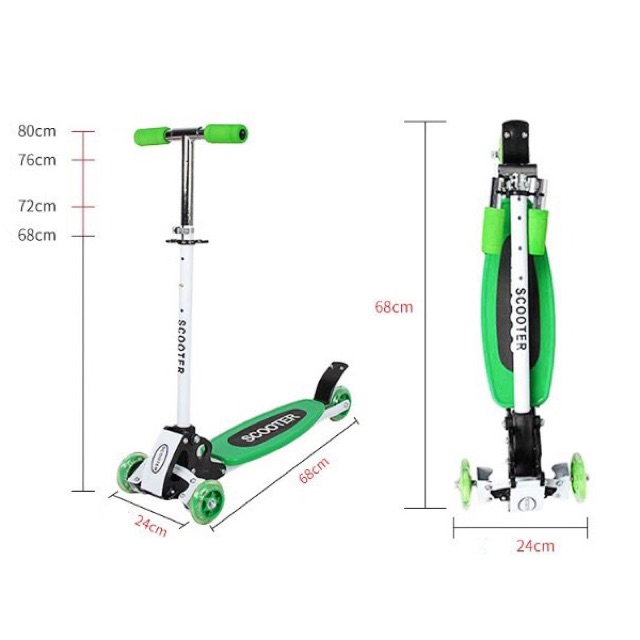 สกู๊ตเตอร์ 4 ล้อ Scooter สำหรับเด็กไซด์ใหญ่ ปรับความสูงได้ 4 ระดับ พับเก็บได้