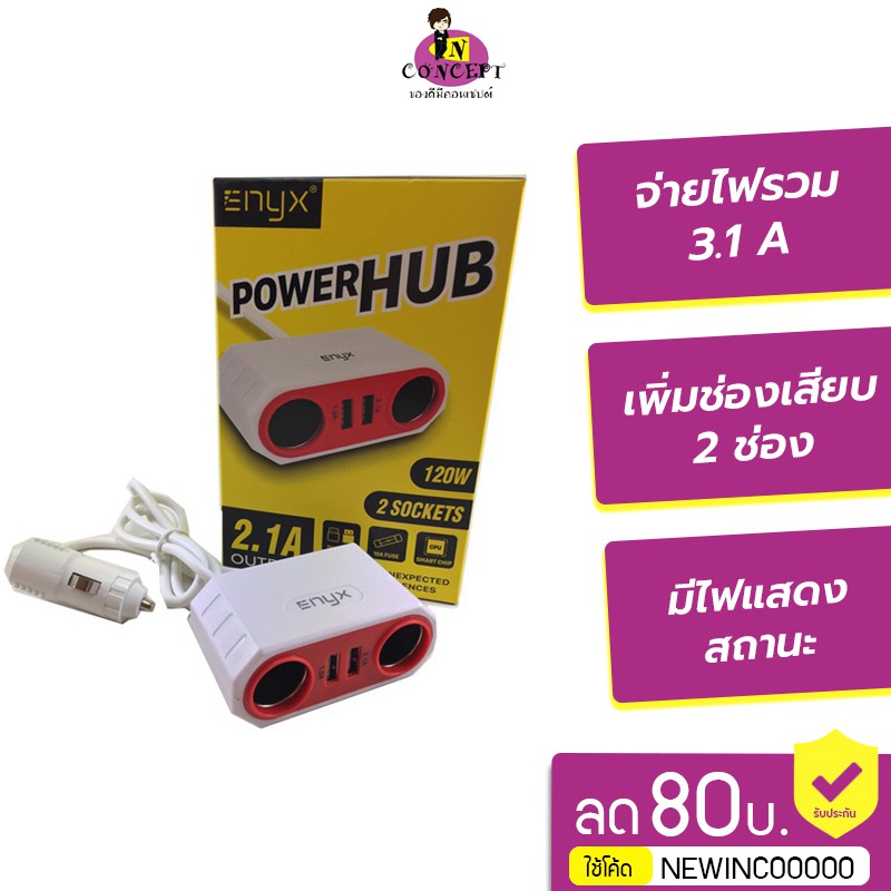 Enyx Power HUB ตัวเพิ่มช่องจุดบุหรี่ในรถและที่ชาร์จ 2 USB
