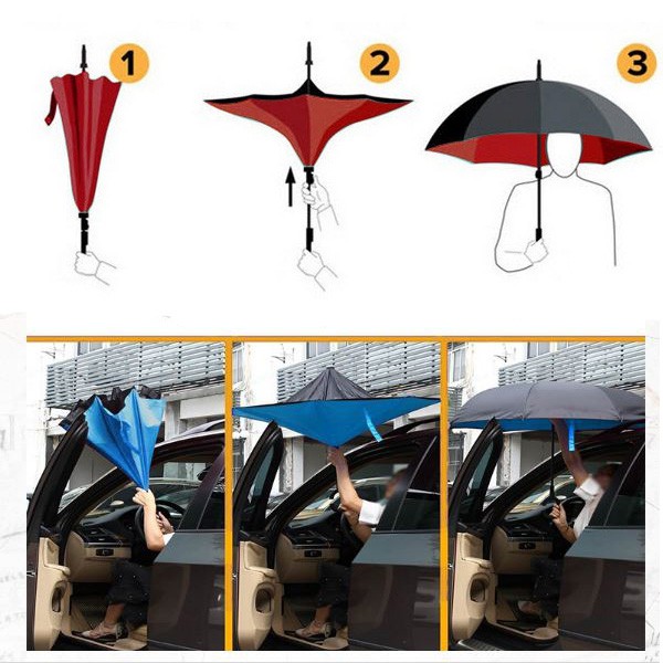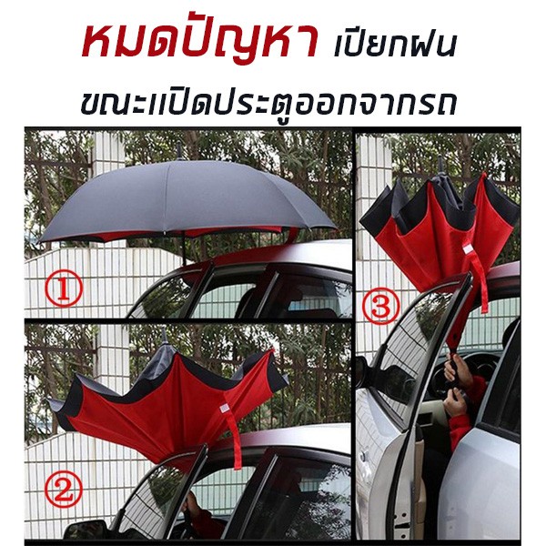 ร่มกลับด้าน 2 ชั้น มือจับตัว C กันฝน กันแดด UV ใช้กิจกรรมกลางแจ้งสนามก อล์ฟได้ดี