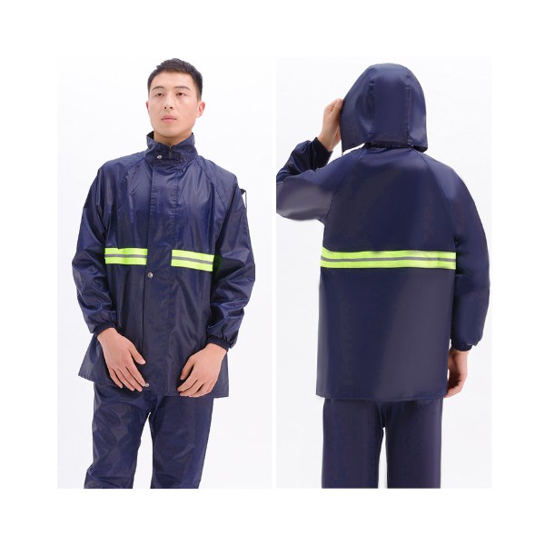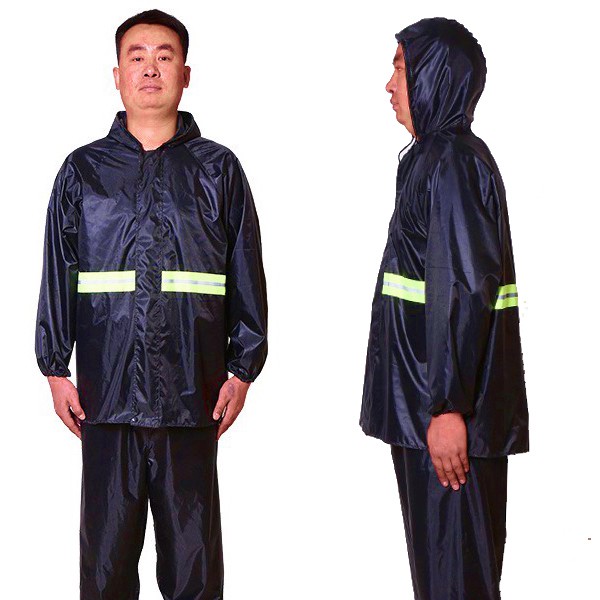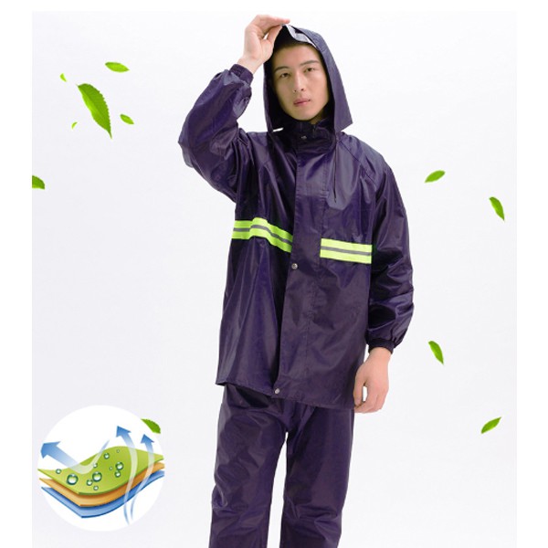 เสื้อกันฝน ชุดกันฝนขี่มอเตอร์ไซค์ มีแถบสะท้อนแสง พร้อมถุงเก็บชุดอย่างดี(สีกรมท่า)