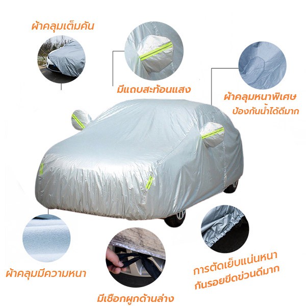 ผ้าคลุมรถยนต์ เก๋ง รถ SUV รถกะบะ กัน UV ปกป้องรถด้วยวัสดุใยนิ่มด้านใน กันแดด กันน้ำ กันฝุ่น มีแถบสะท้อนแสงเวลากลางคืน