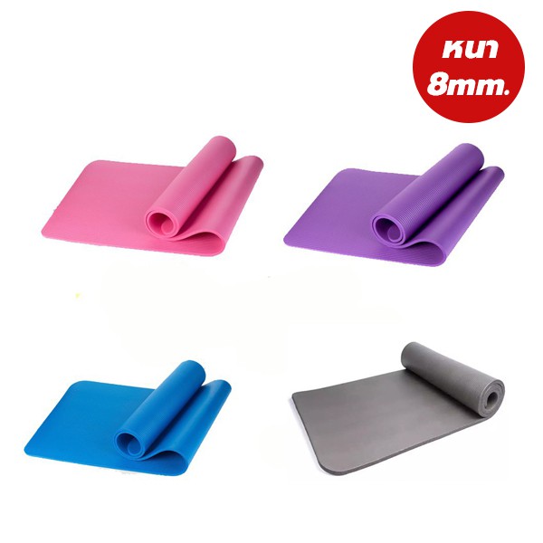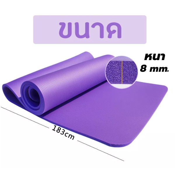 เสื่อโยคะ หนา 8 mm ขนาด 183x61 cm แถมฟรีกระเป๋าและสายรัดเสื่อ