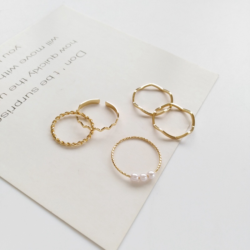 แหวนมุกแฟชั่น สไตล์เกาหลี สําหรับผู้หญิง 5 ชิ้น