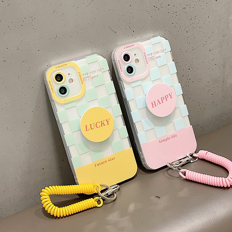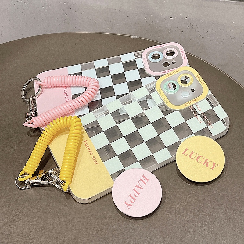 [พร้อมส่ง] เคสโทรศัพท์มือถือ ลายตารางหมากรุก พร้อมที่แขวน สําหรับ Apple iPhone13 ProMax 11 12 Mini XS I8 I7 Plus