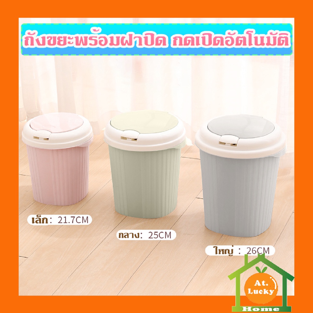 [7.15 เก็บโค้ดส่งฟรีหน้าร้าน]At.LuckyHome ถังขยะ ถังขยะพร้อมฝาปิด ถังขยะกลม แบบกดเปิดอัตโนมัติ