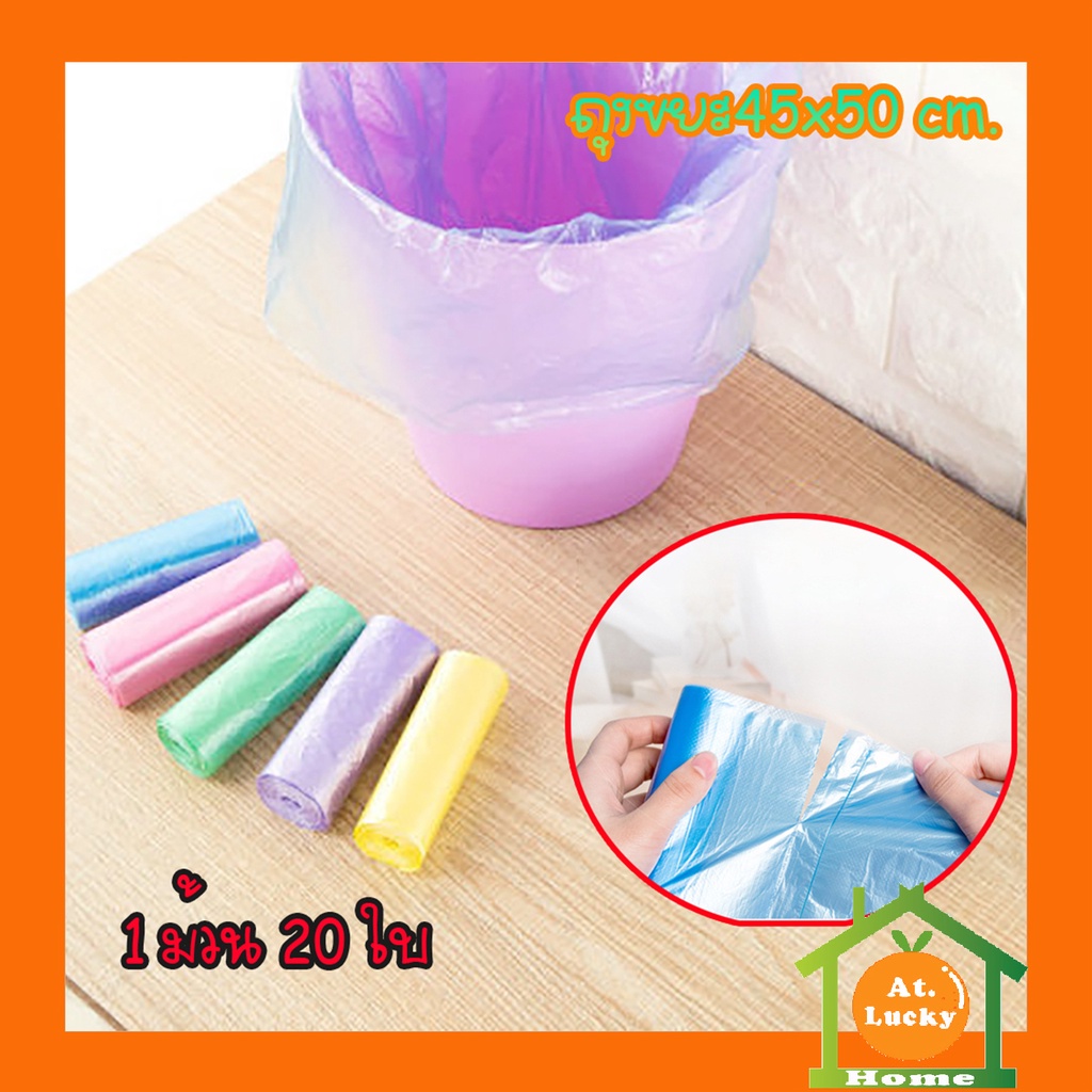 At.LuckyHome ถุงขยะขนาดพกพา เนื้อเหนียว ไม่สกปรก ถุงขยะ45x50cm. ถุงขยะหลากสี 1 ม้วน