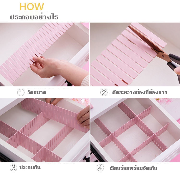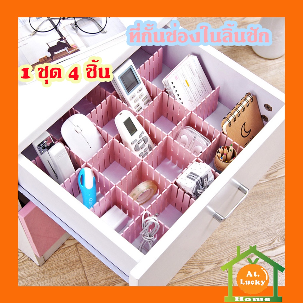 At.LuckyHome แผ่นกั้นแบ่งช่องลิ้นชัก กั้นช่องลิ้นชัก แผ่นจัดระเบียบลิ้นชัก (แพ็ค4ชิ้น) แผ่นกั้นแบ่งช่องจัดระเบียบ