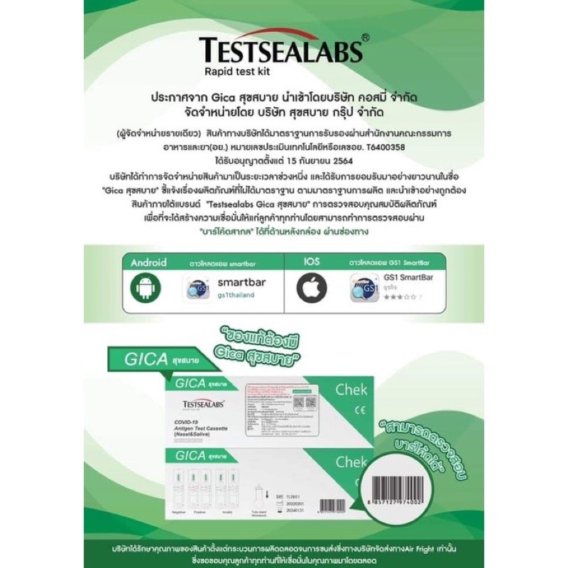ชุดตรวจโควิด Gica 2in1 Testsealabs COVID-19 Antigen Test (สุขสบาย)