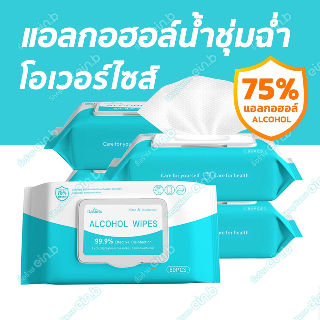 ทิชชู่ Alcohol wipes ทิชชู่แอลกฮอล์75% ทิชชู่เปียก พกพาง่ายไม่ระคายเคืองผิว 10แผ่น-50แผ่น 99.99%