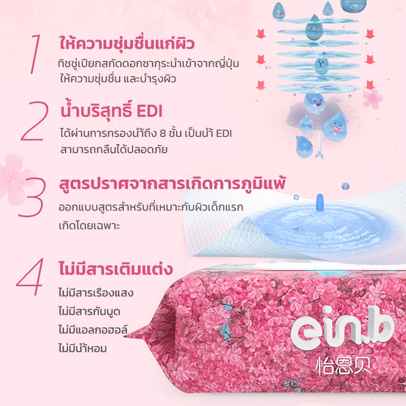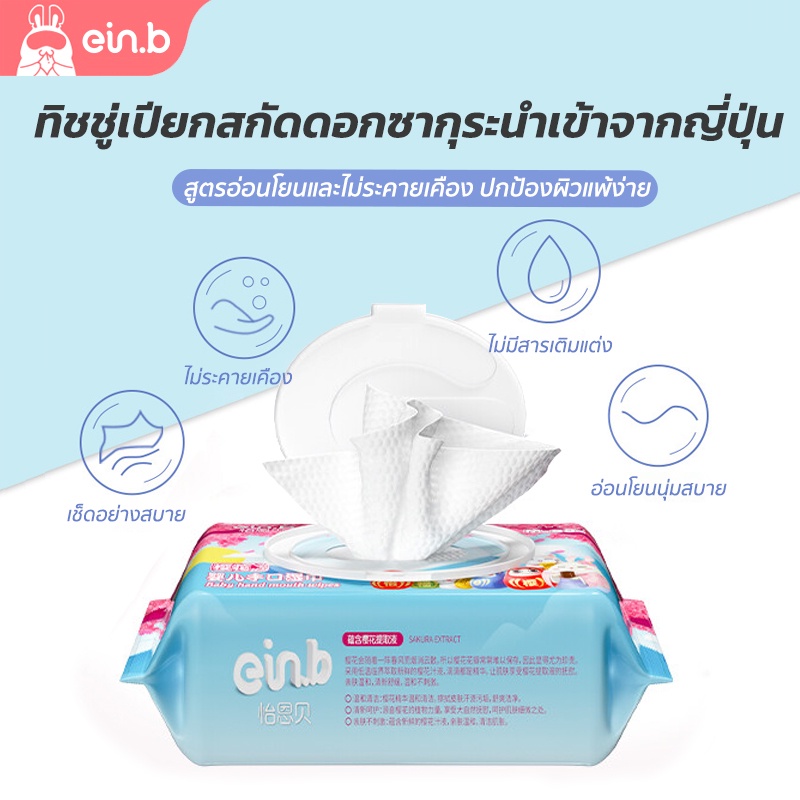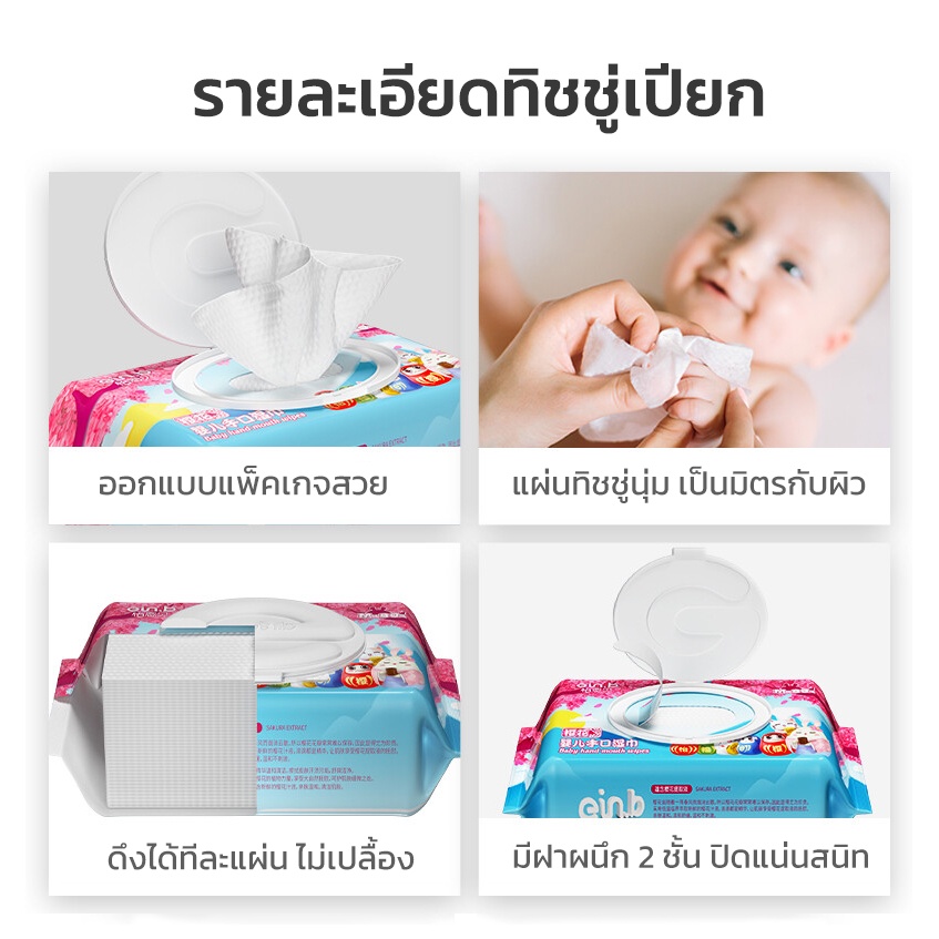 ซื้อ1แถม1 ทิชชู่เปียกเด็ก80แผ่น เช็ดมือได้เช็ดปากไ้ด้ เด็กแรกเกิด สารสกัดจากดอกซากุระ อ่อนโยนต่อผิว