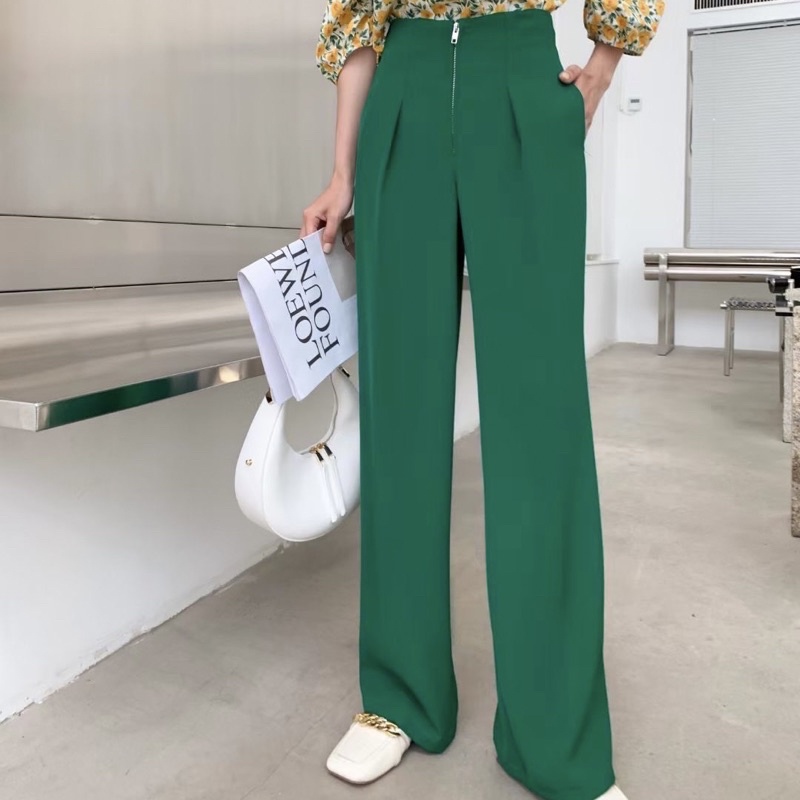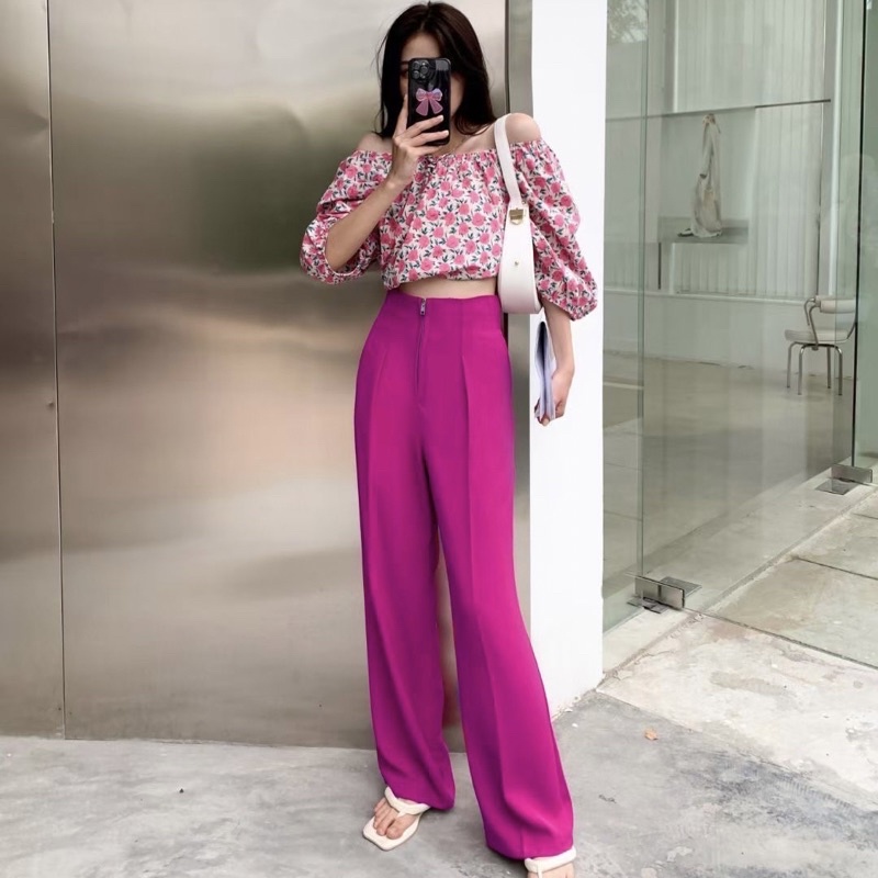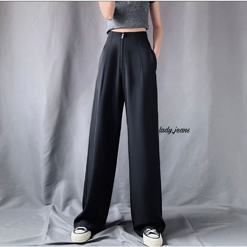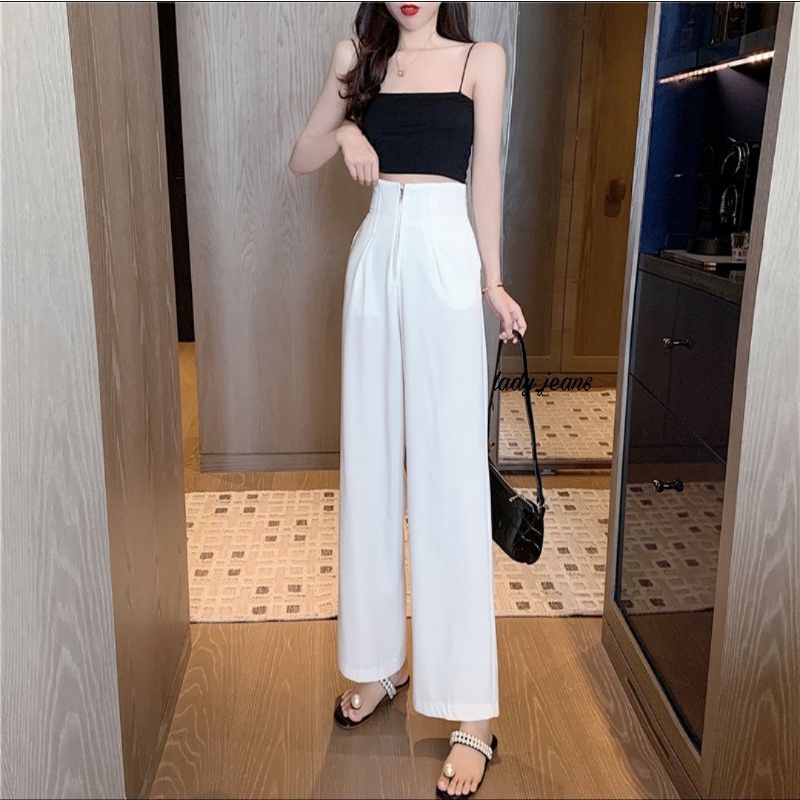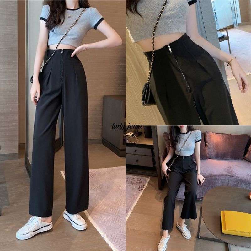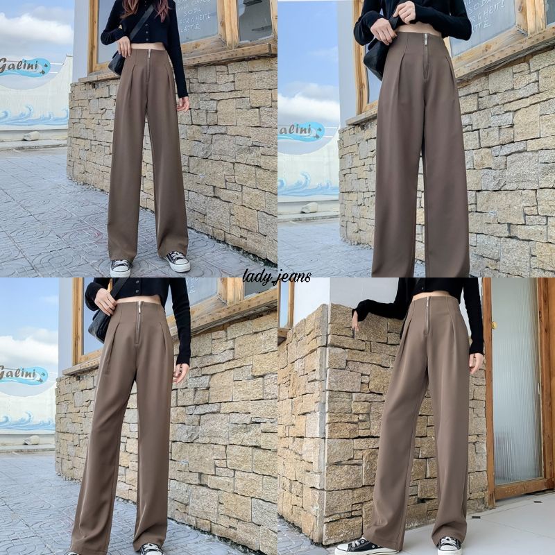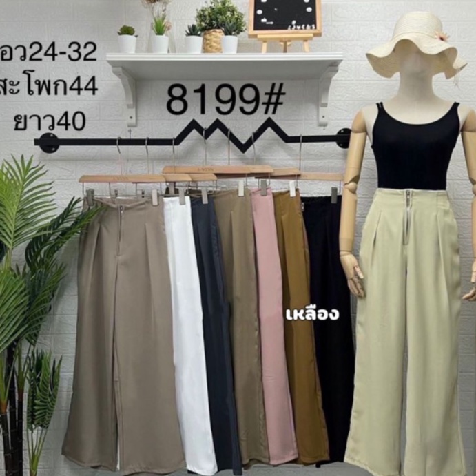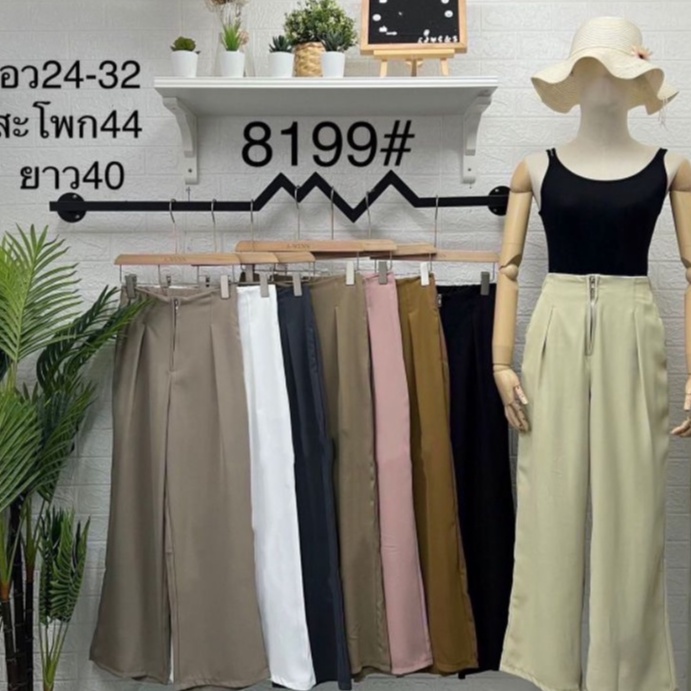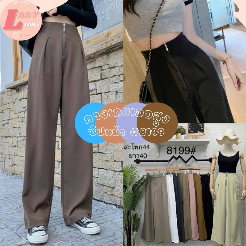 LADY_JEANS #8199(A)กางเกงเอวสูงซิปหน้า ทรงกระบอก สม็อคหลัง เก็บพุง พร้อมส่ง