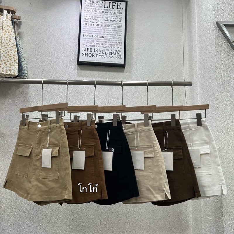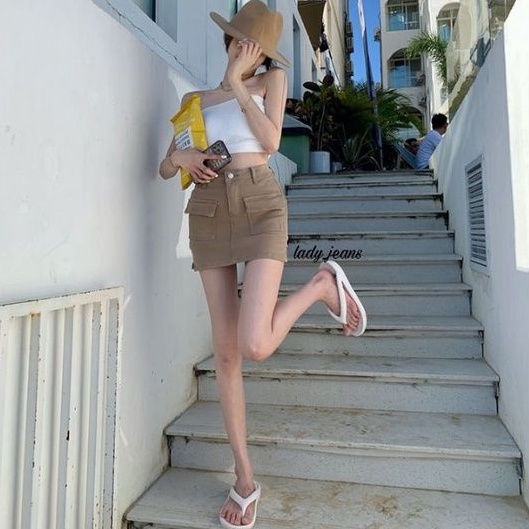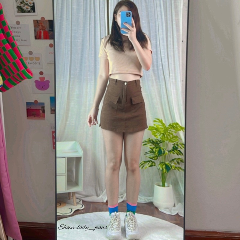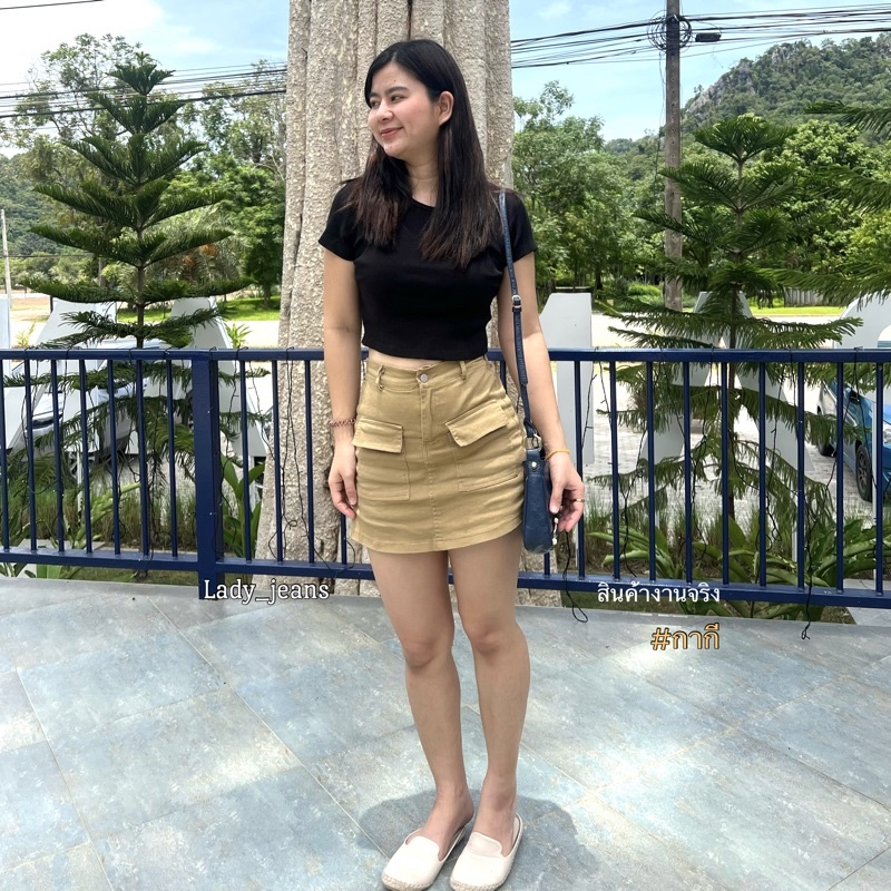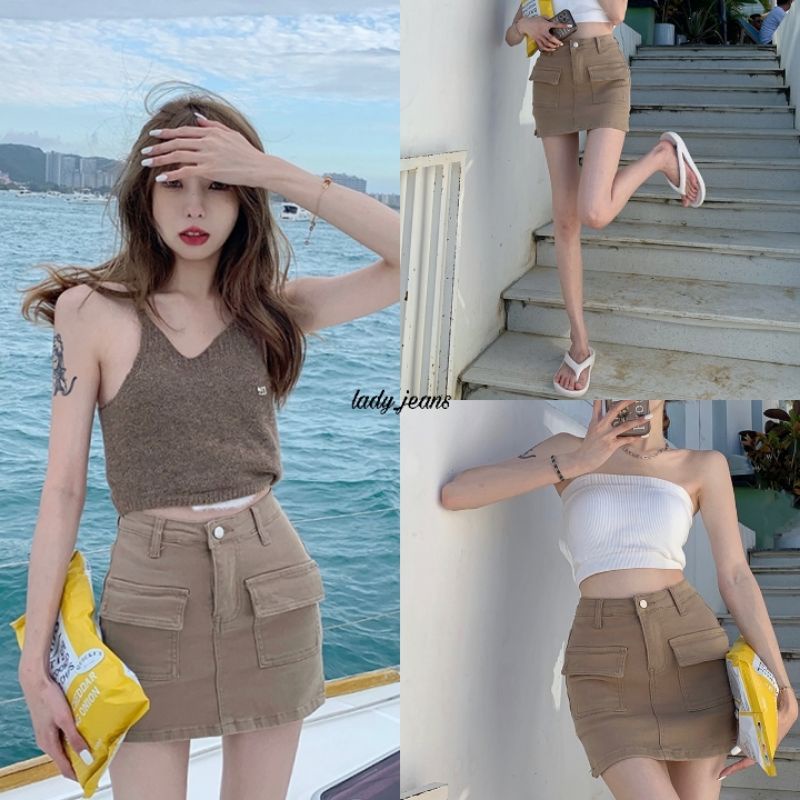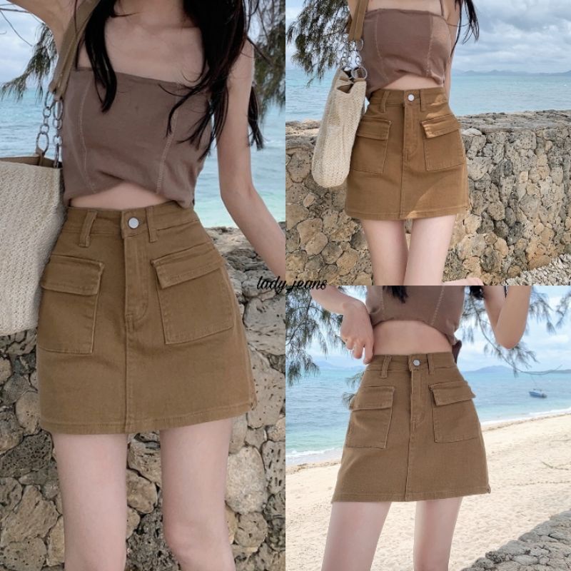 Lady_jeans #9922-1(K)กระโปรง+กางเกงสายแคมป์ปิ้งเอวสูงกระเป๋าหน้า ผ่าข้างกระโปรงแฟชั่น