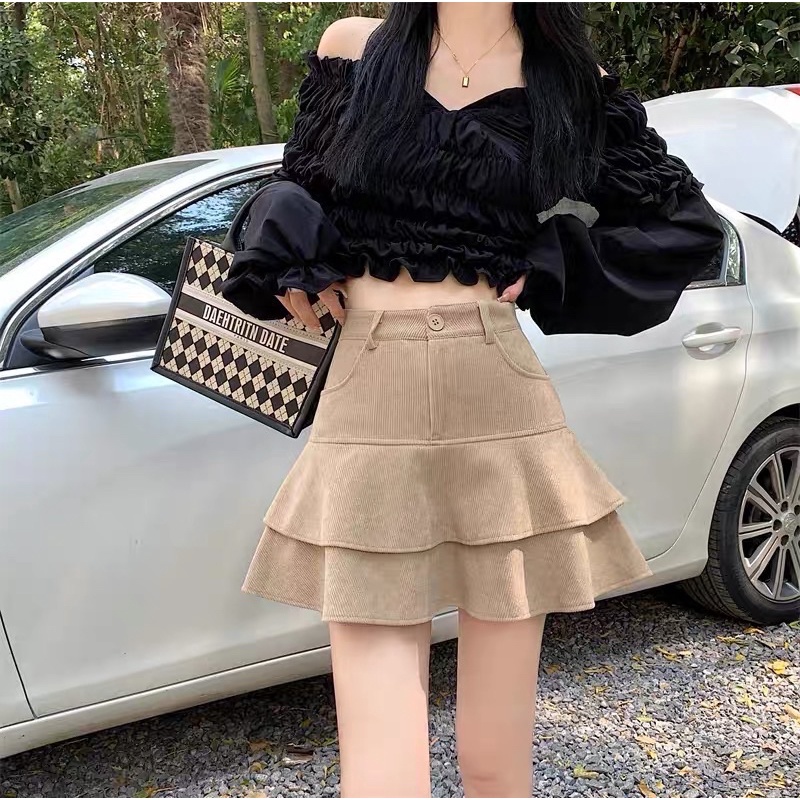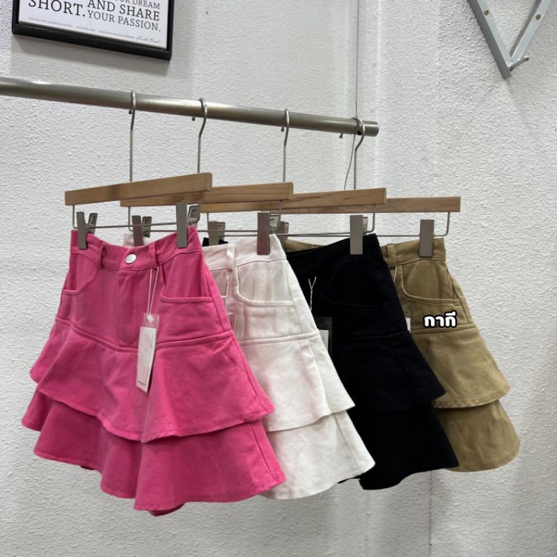 LADY_JEANS #971 (K)(การันตียอดขาย2พันตัว📌) กระโปรงพลีท2ชั้นทรงระบาย วาเลนไทน์ เอวสูง เอวกระดุม ผ้ายีน