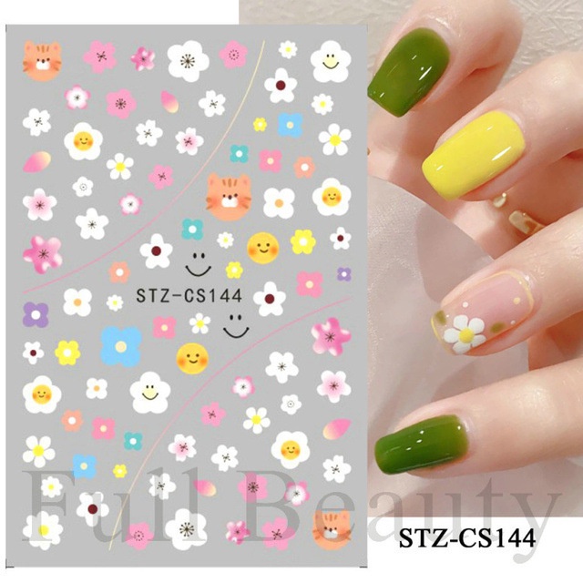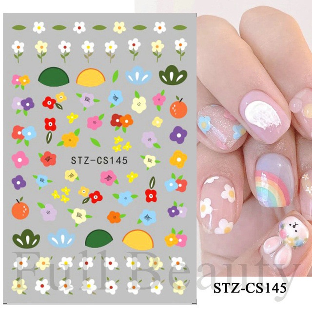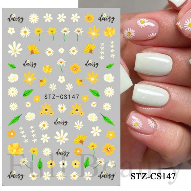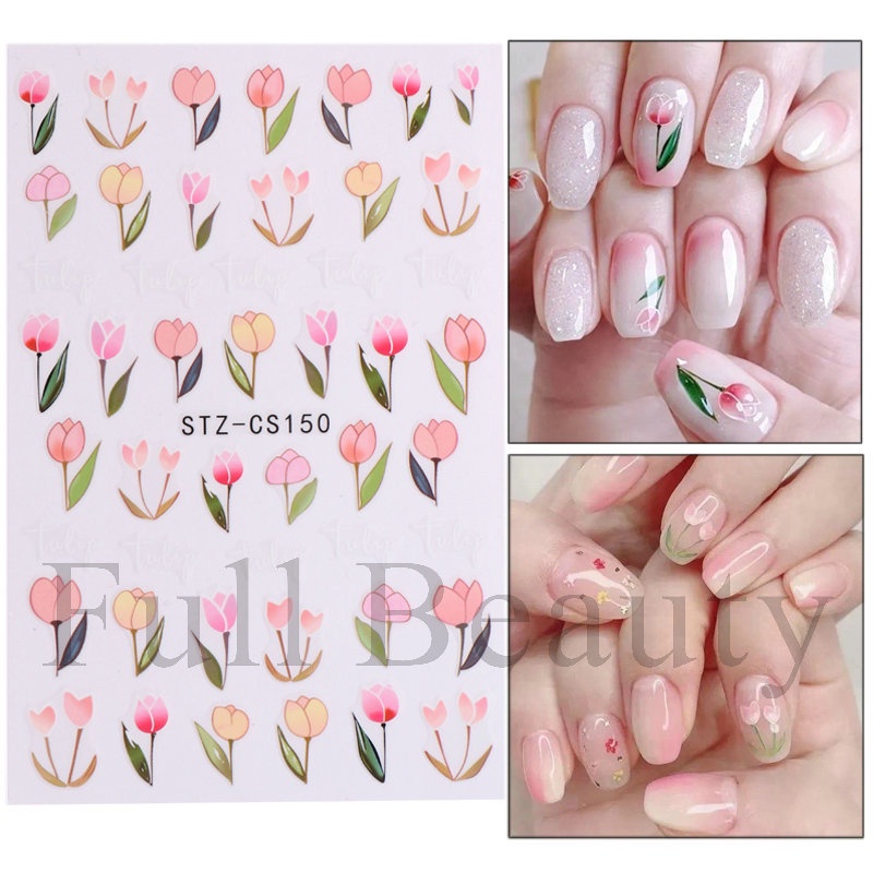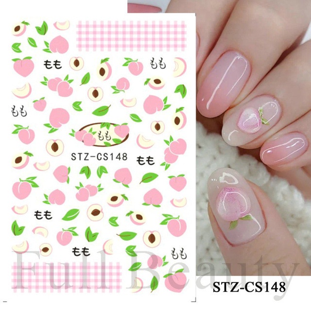 สติกเกอร์ติดเล็บ กันน้ํา ลายดอกทิวลิป ดอกเดซี่ พีช สตรอเบอร์รี่ เหมาะกับฤดูร้อน