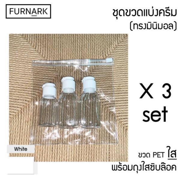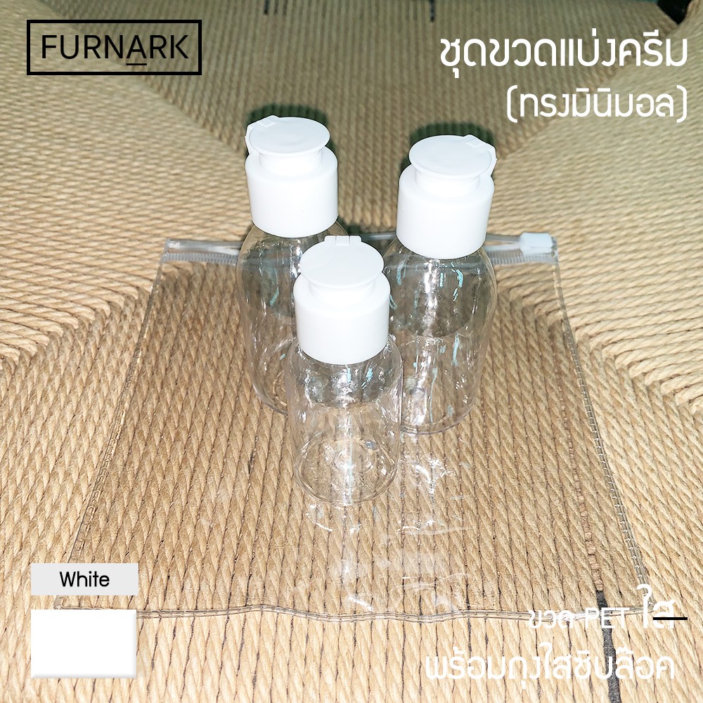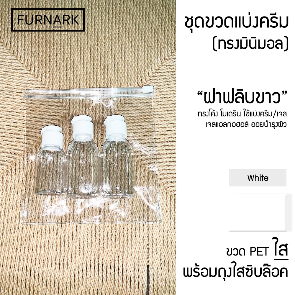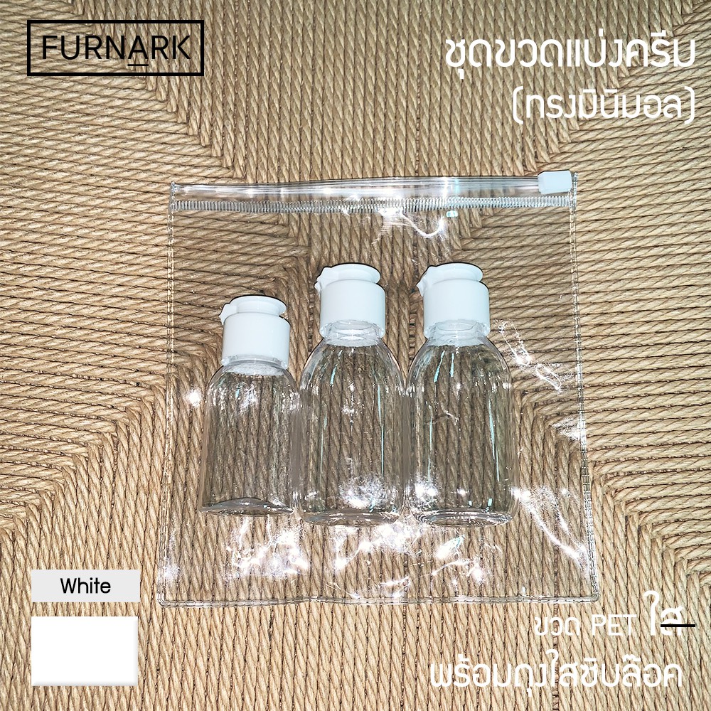 (พร้อมส่ง) Furnark ชุดขวดแบ่ง ใส [PET] ฝาฟลิบขาว แบ่งใส่ของเหลว (พร้อมถุงซิบล็อคใส)