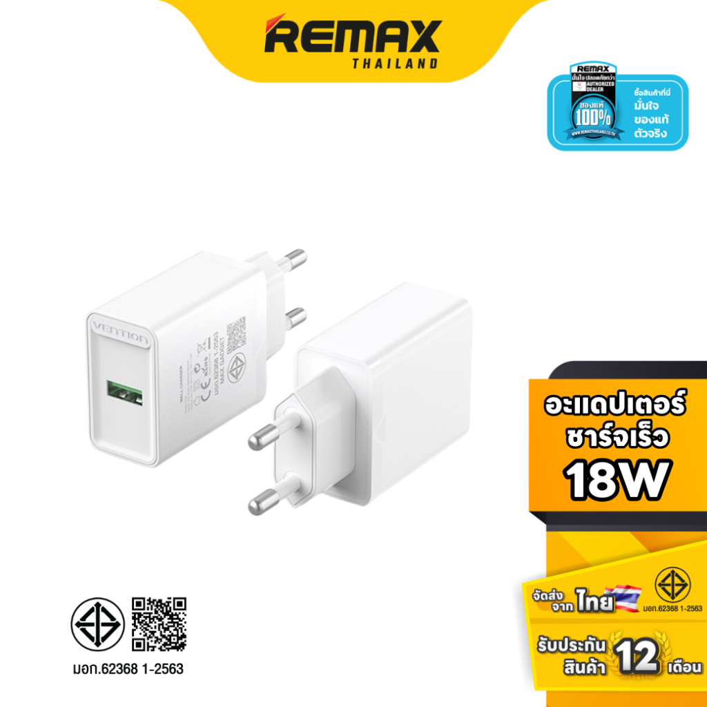 Vention Adapter USB Charger รุ่น FAB 18W - หัวชาร์จ อะแดปเตอร์ โทรศัพท์มือถือ ชาร์จไฟ มี มอก.ไทย ขากลม