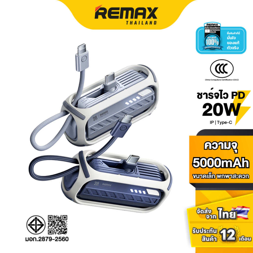 [ CCC ] Remax Power Bank 5000mAh 2in1 (RPP-28) - พาวเวอร์แบงค์ มีสายในตัว Type-C / L ไซส์มินิ ขนาดเล็ก