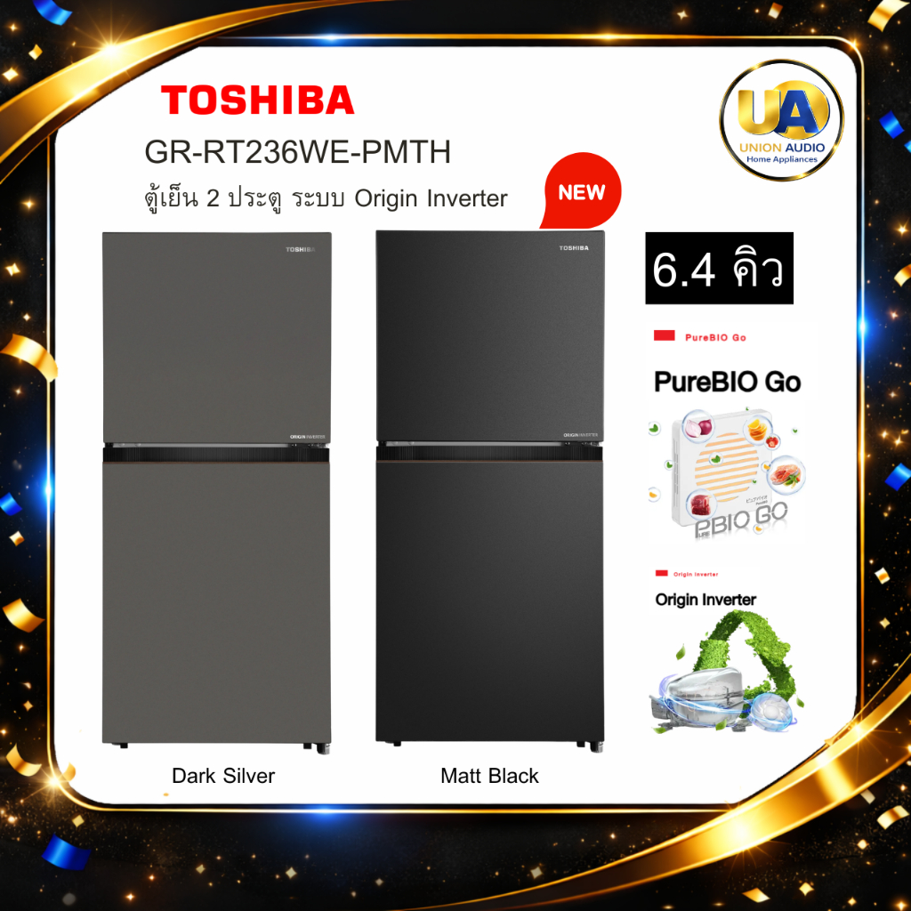TOSHIBA ตู้เย็น 2 ประตู รุ่น GR-RT236WE-PMTH 6.4 คิว ระบบ Origin Inverter gr-rt236we rt236