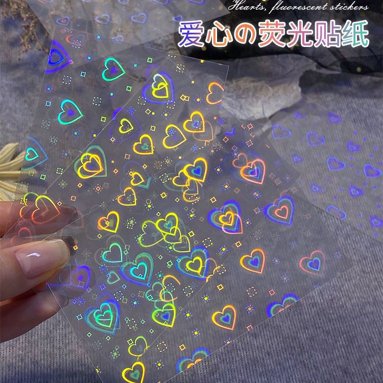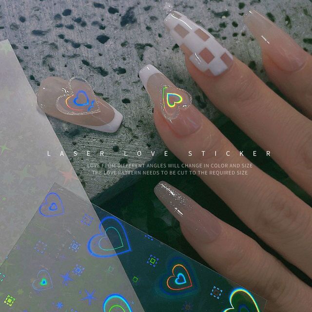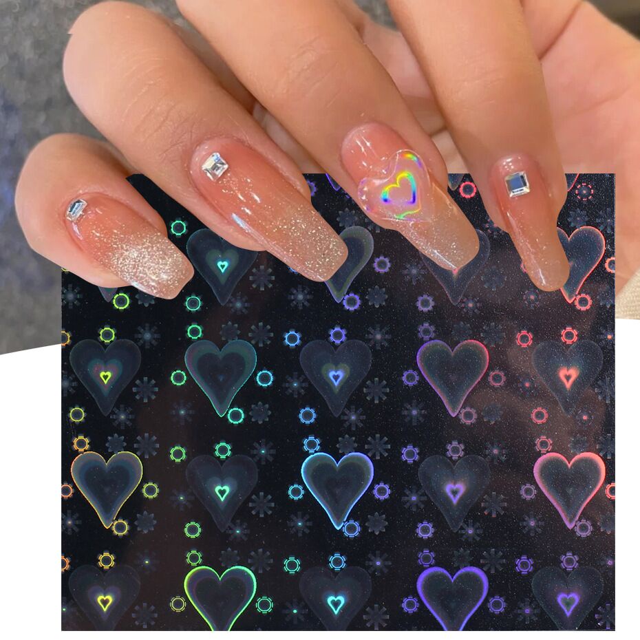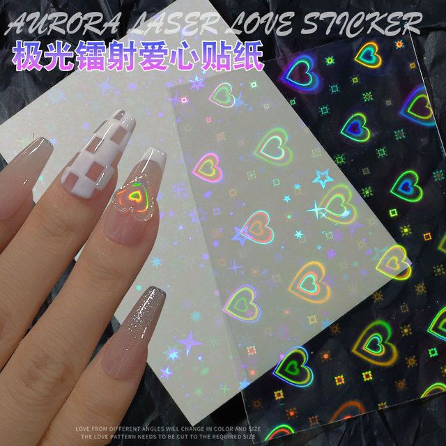 สติกเกอร์ติดตกแต่งเล็บ ลายหัวใจ ดาวออโรร่า