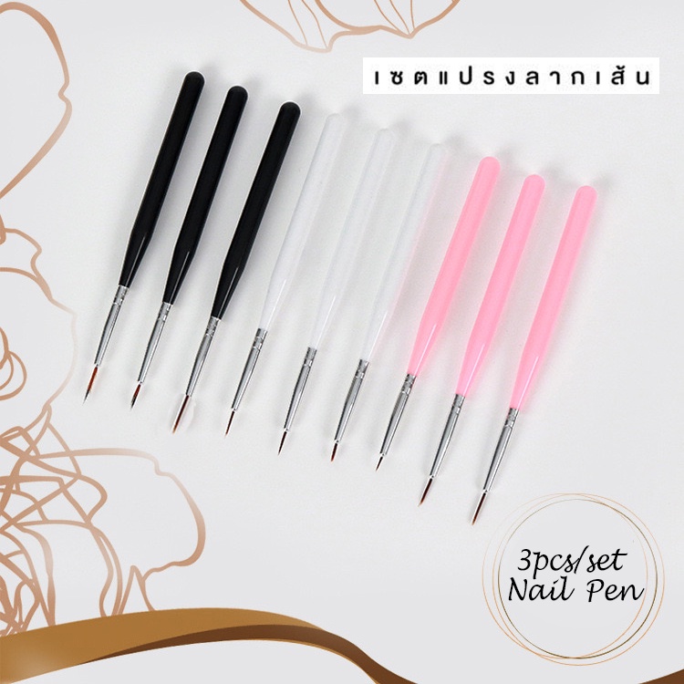 ชุดเครื่องมือปากกาวาดเส้นเล็บ วาดภาพระบายสี ตกแต่งเล็บ 3 ชิ้นต่อชุด