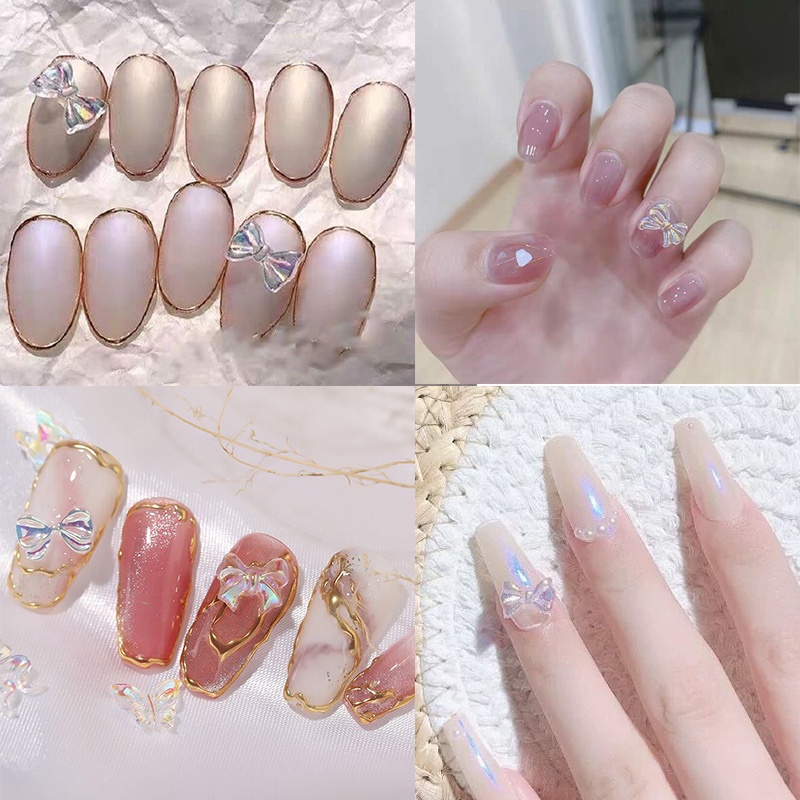 พลอยเทียมเรซิ่น AB รูปผีเสื้อ โบ หมี 3D สําหรับตกแต่งเล็บ DIY